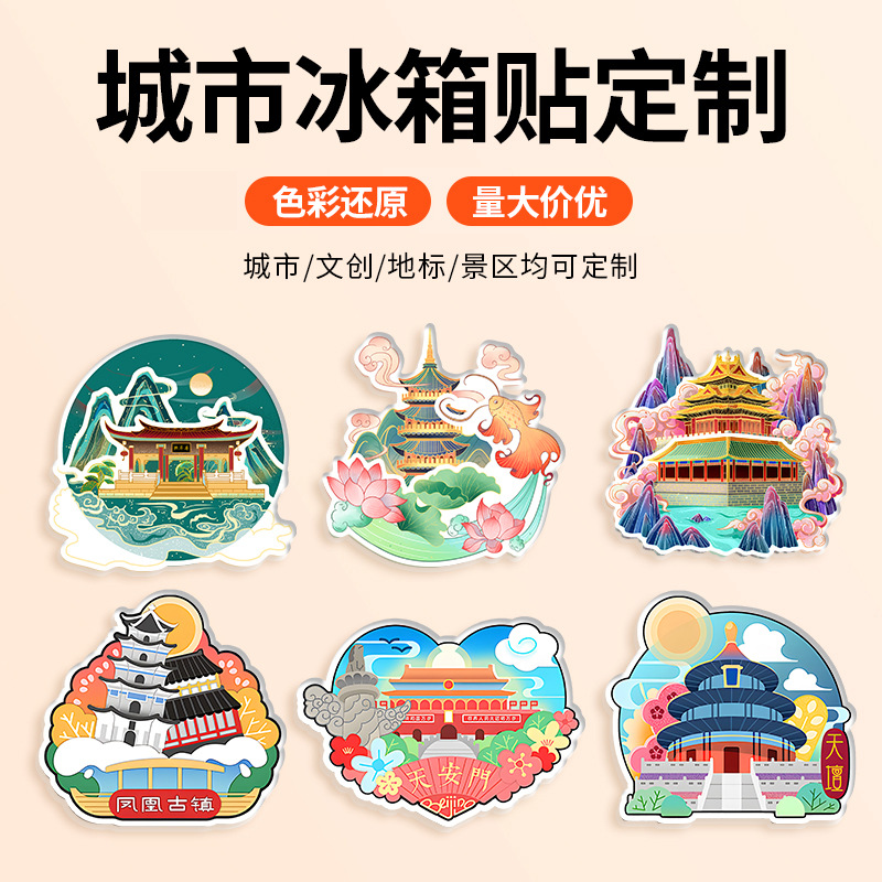 文化的で創造的な冷蔵庫用マグネット、アクリル周辺機器、漫画の観光スポット、都市の創造的な磁気ステッカー、接着剤、木製の旅行のお土産