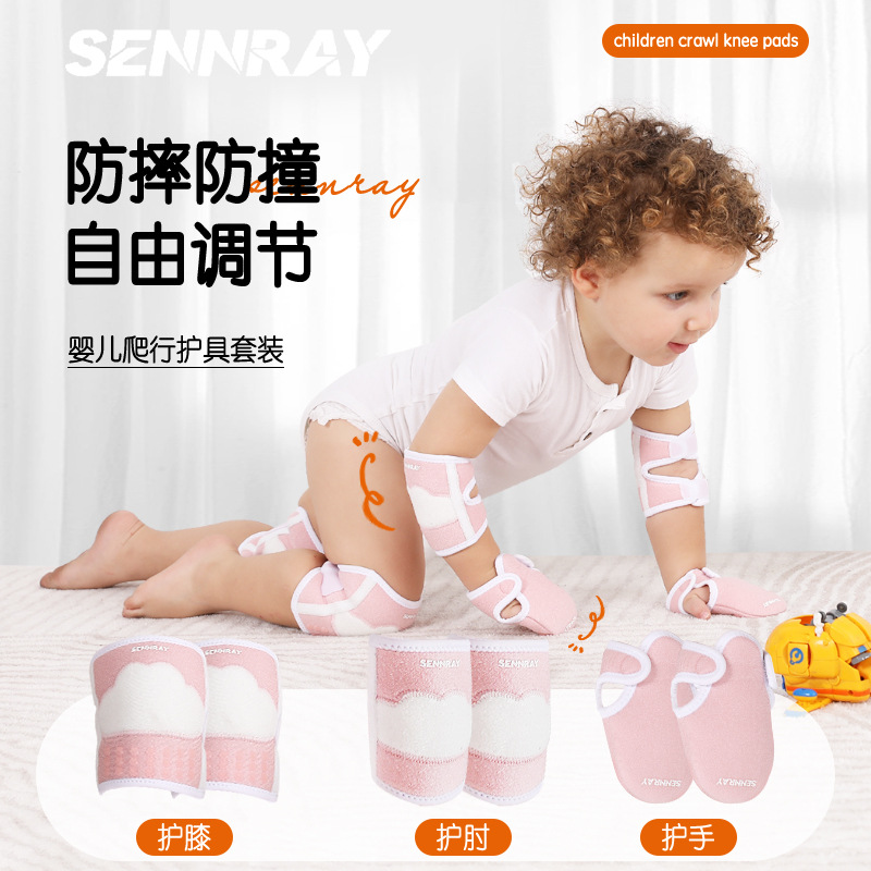 儿童护膝护肘护手宝宝爬行防摔护具婴儿防撞装备防滑可调节透气夏