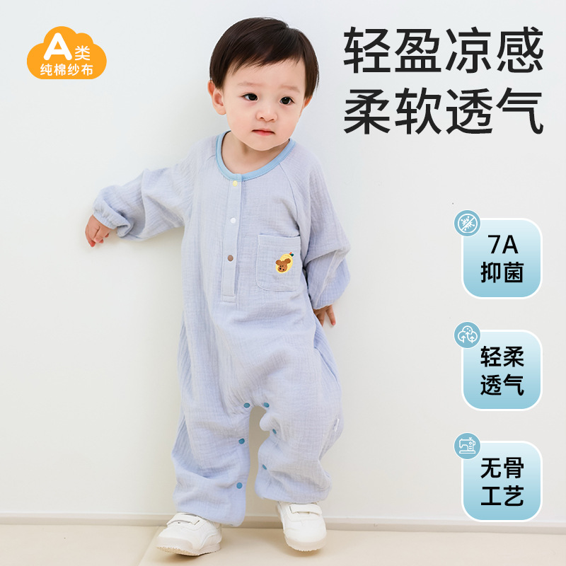 宝宝连体衣春秋纯棉纱布长袖新生儿爬服婴儿哈衣幼儿宝宝睡衣A类