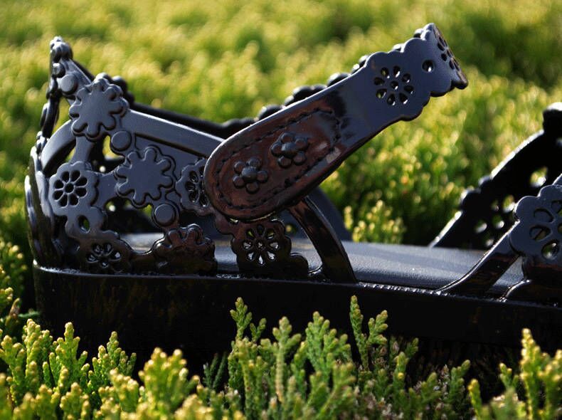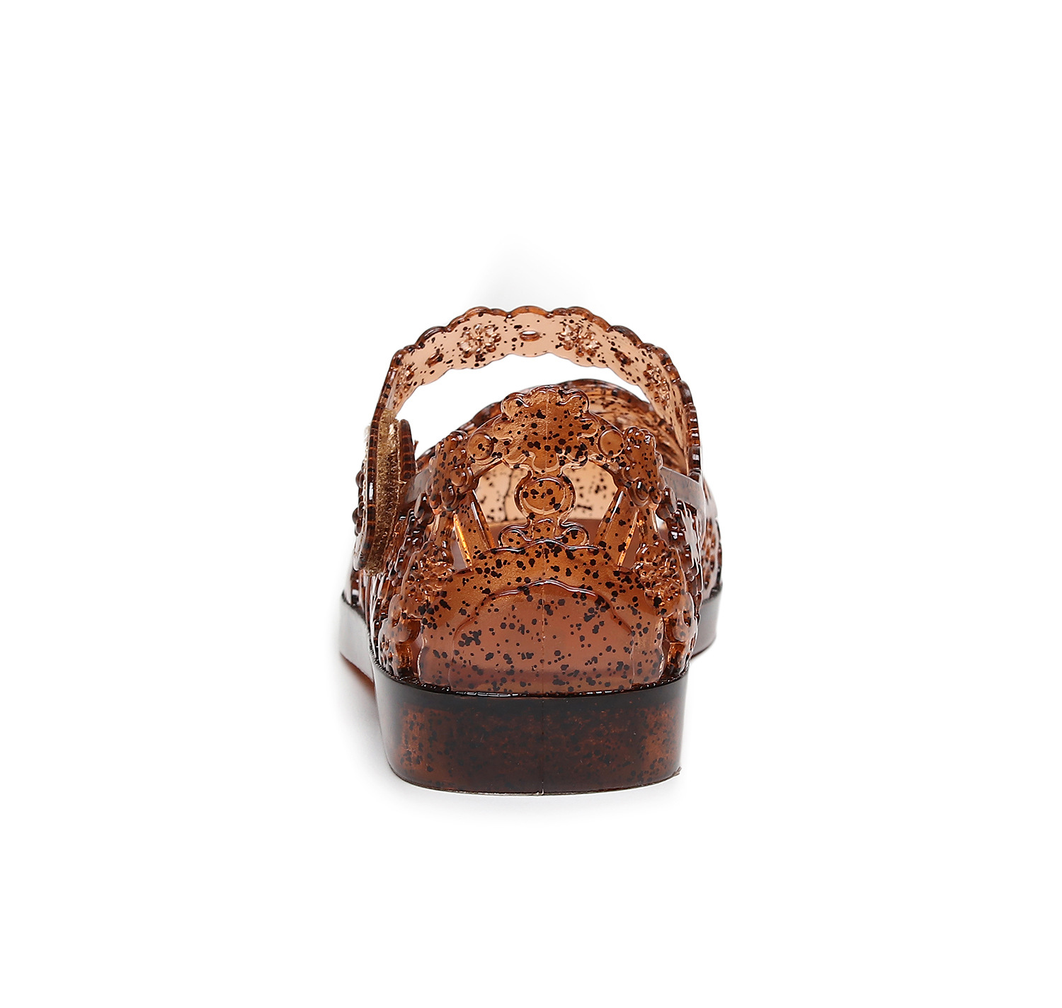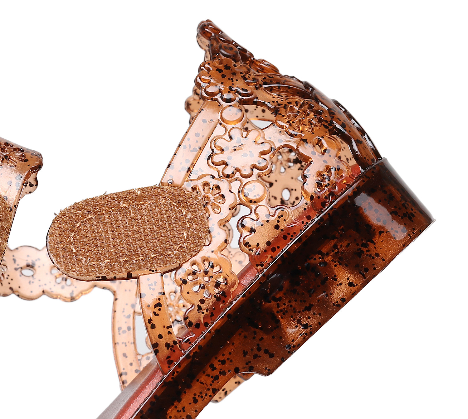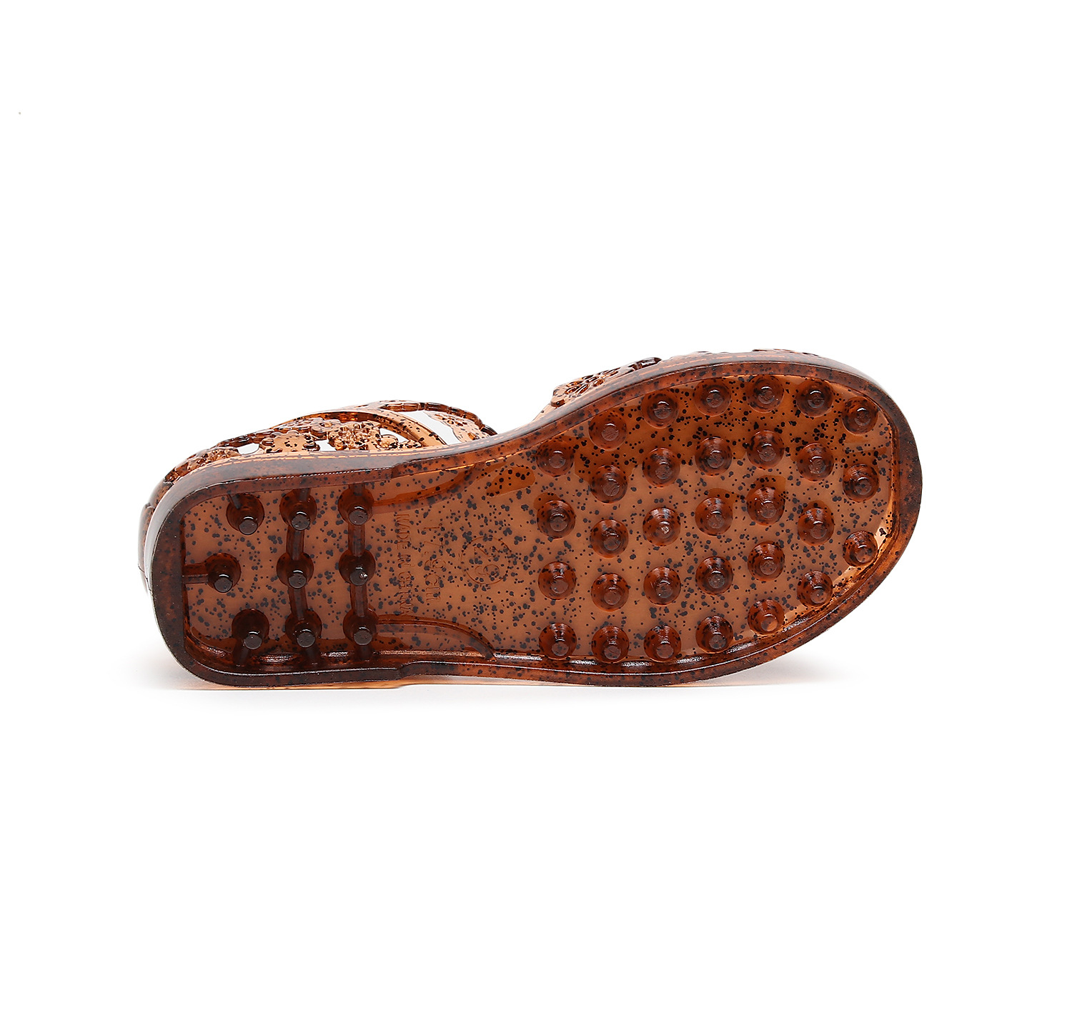 2023夏クロスボーダー透かし彫り鳥の巣サンダルキラキラ水晶平底通気レジャー女性ゼリー靴卸売り工場