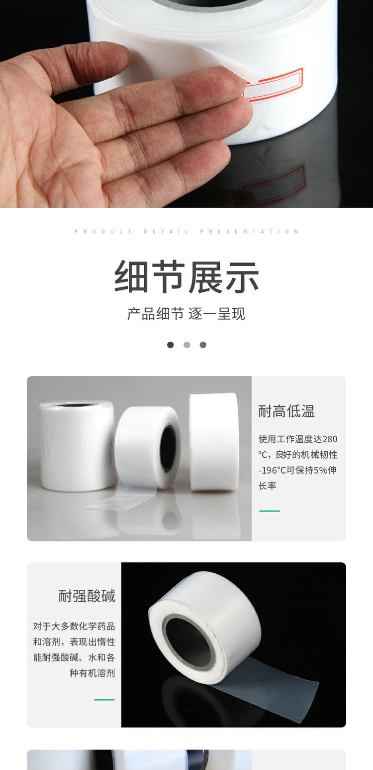 聚四氟乙烯膜白色隔热薄膜 白色绝缘ptfe耐腐蚀四氟定向缠绕膜