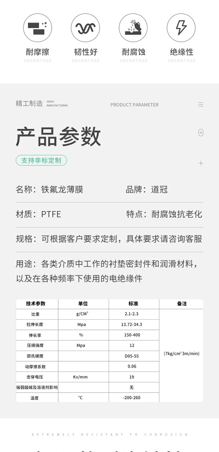 テフロンフィルムPTFE配向性テフロンフィルムオール新材耐高低温テフロン防腐フィルム