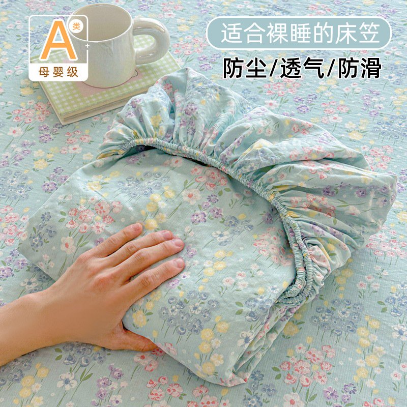 防滑亲肤a类母婴级床笠罩防尘防脏四季双层纱皱皱棉床笠床罩直营