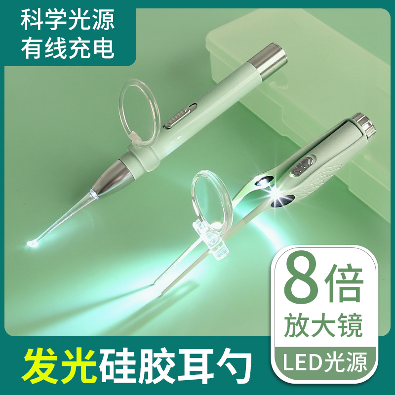 光る耳のスプーンの家庭用の耳抜きツールは耳の糞の赤ちゃんの子供を掘って充電します。