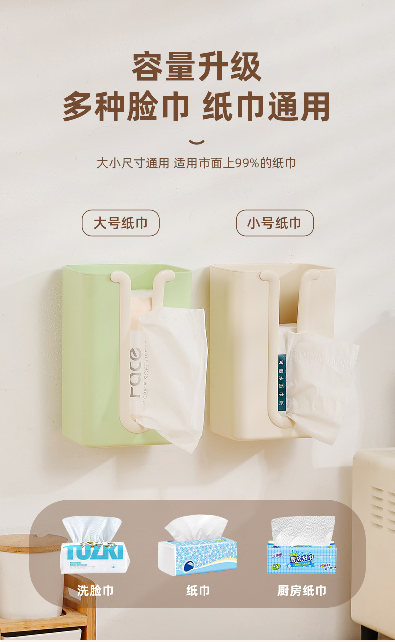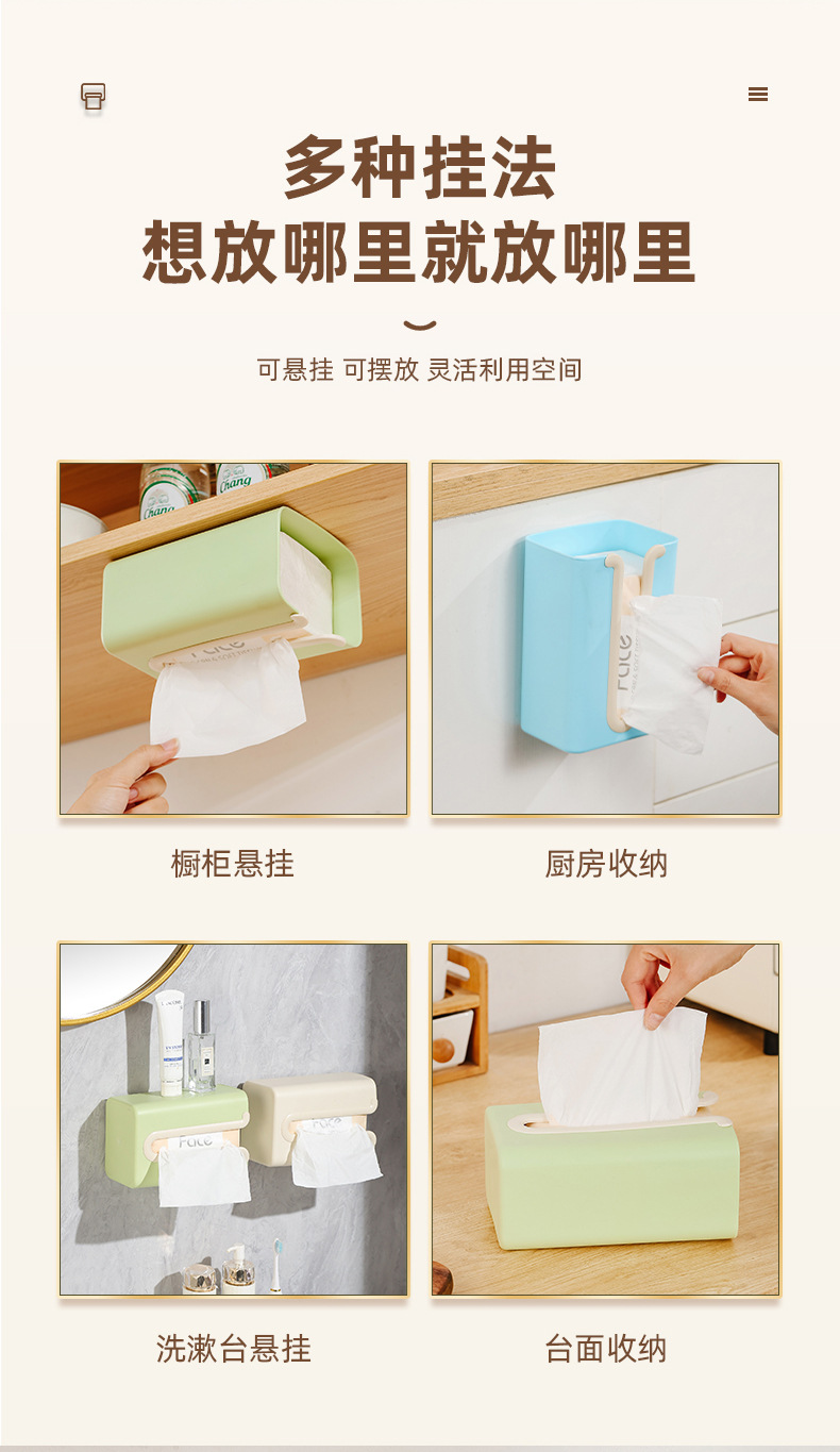 プラスチック厚手多機能ティッシュボックス創意穴なし引き出し箱壁壁掛け式トイレティッシュ引き出し箱