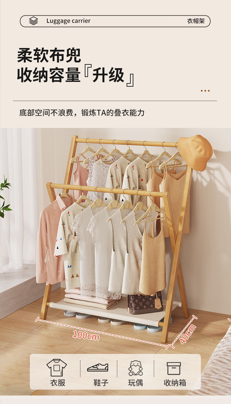 衣架折叠加厚落地卧室挂衣架家用客厅阳台多功能晾衣架简易衣帽架