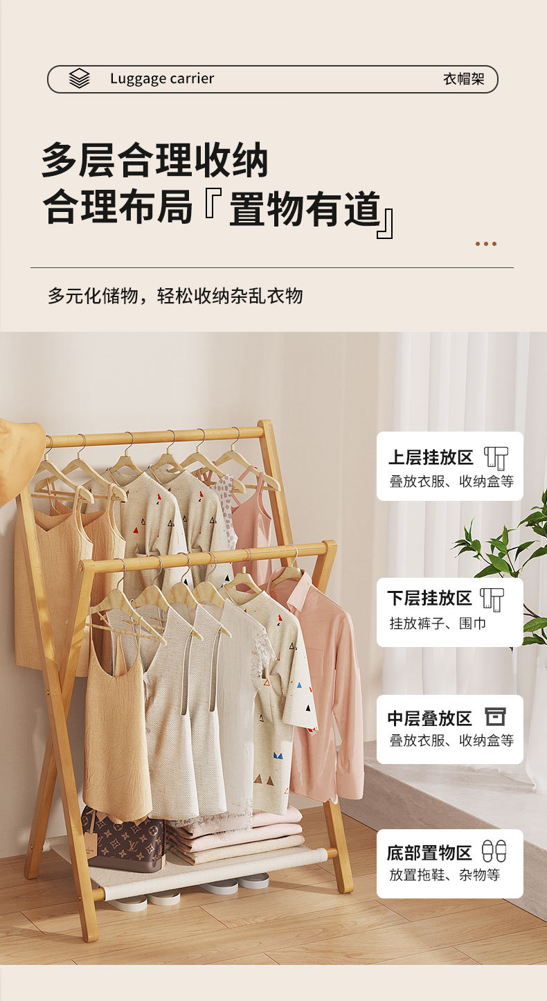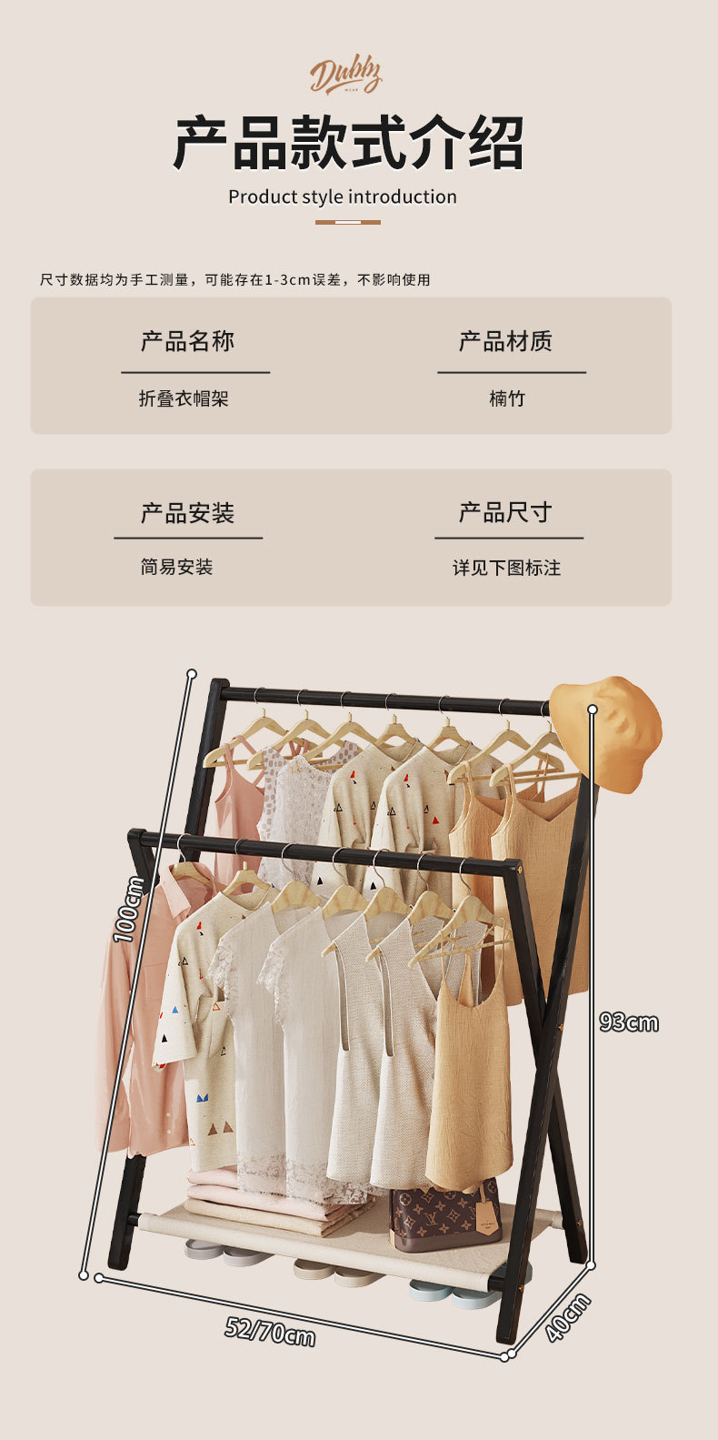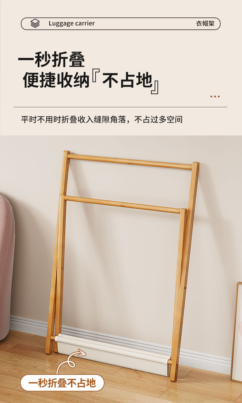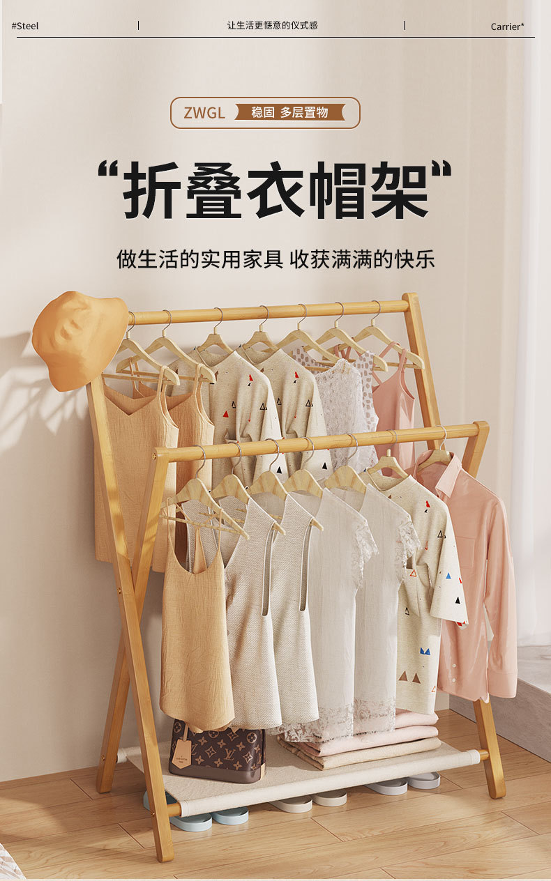 家庭用寝室折り畳み服帽子ラック床置き太く実木ハンガーベランダハンガー服帽子ラック