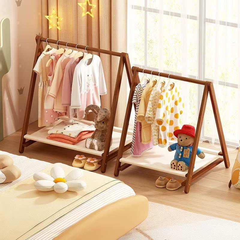子供用コートラック床置きベビー無垢材洋服ラック寝室シンプルな洋服ラック幼児衣類収納ラック