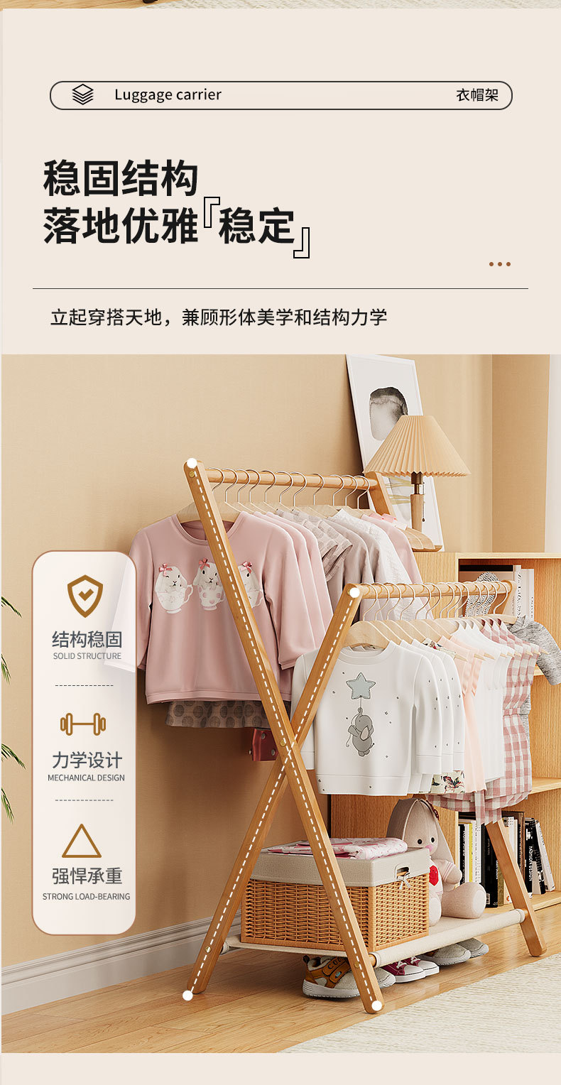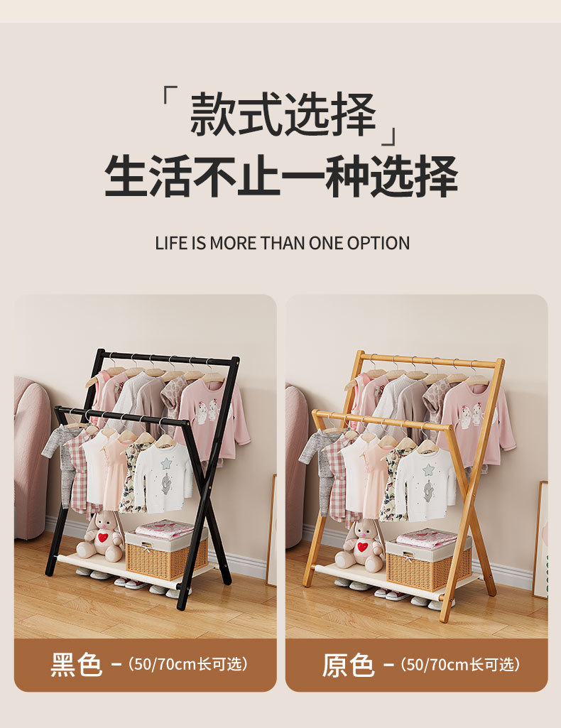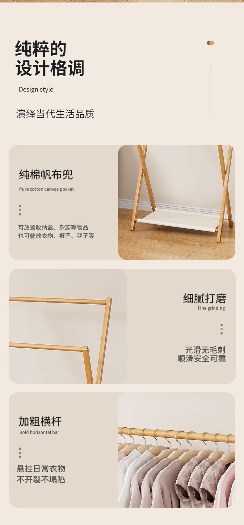 床置き衣類ラックシンプルな肥厚無垢材寝室コートラック衣類ラック家庭用衣類乾燥ラック収納ラック取り外し可能