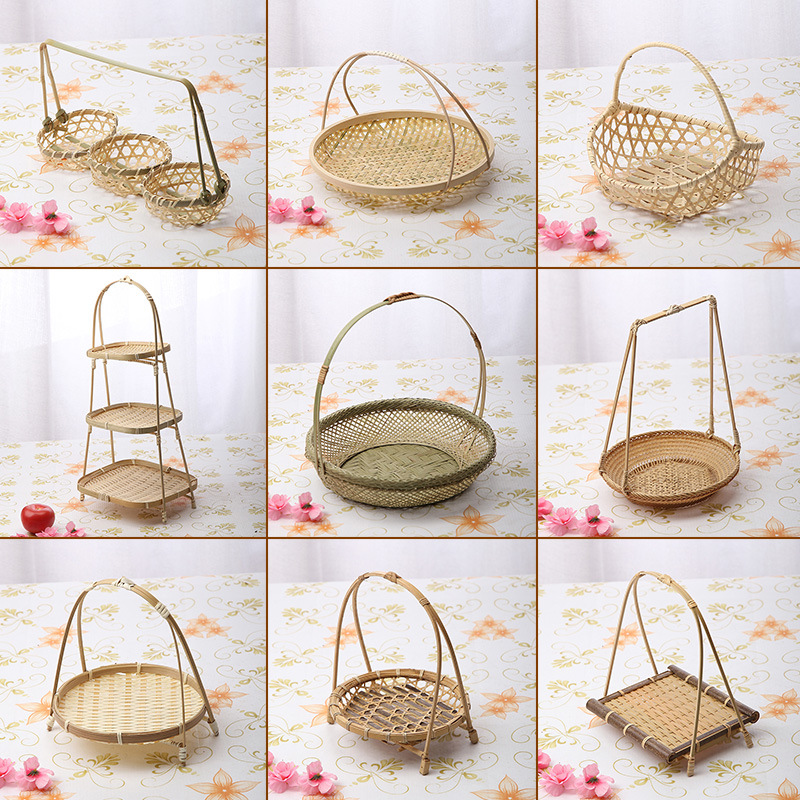 竹製の収納かご、ホテルの撮影用小道具、フルーツバスケット、饅頭かご、収納装飾、レトロスタイルの家庭用品