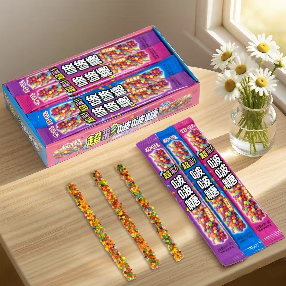 升旺超彩啵啵糖爆款网红超彩卷卷豆水果彩虹糖小卖部儿童休闲零食