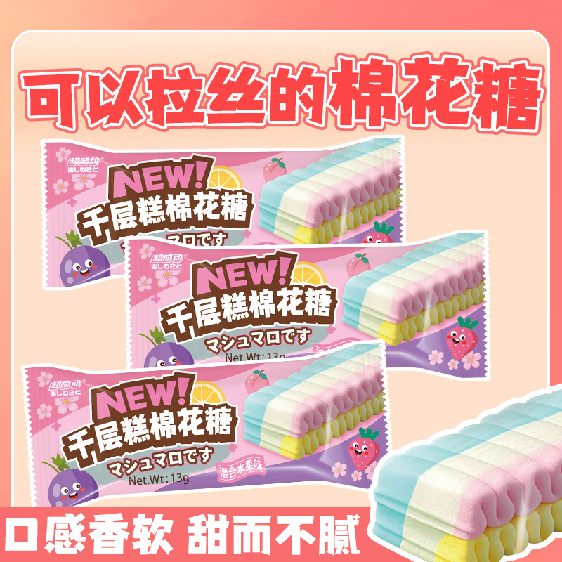 【千层糕棉花糖】儿童零食休闲食品独立包装拉丝棉花糖童年零食