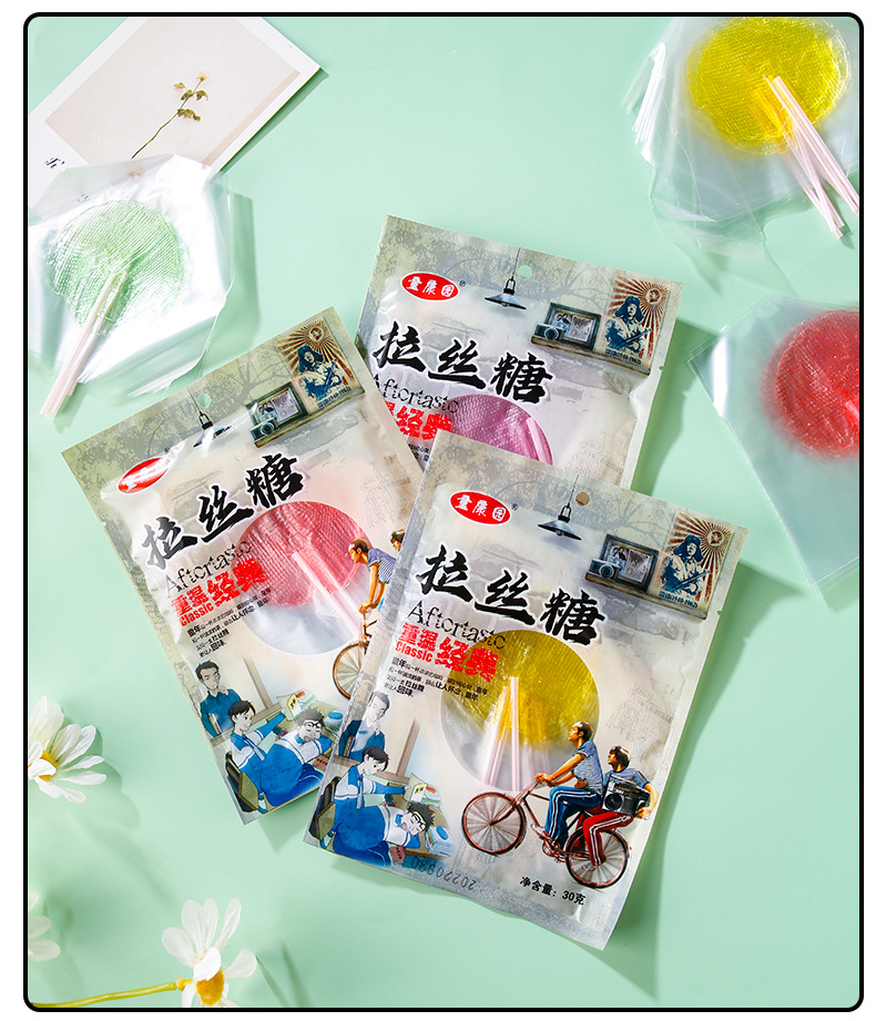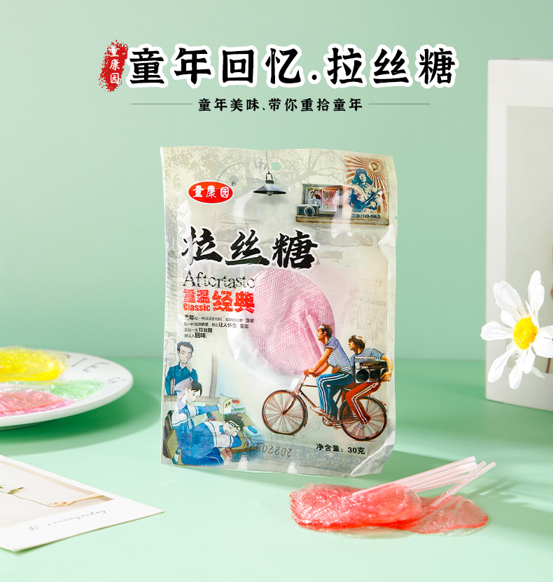童康園太陽糖伸糸糖粘歯糖8090後レトロ粘歯子供の頃の子供の手で歯麦芽糖をつけた