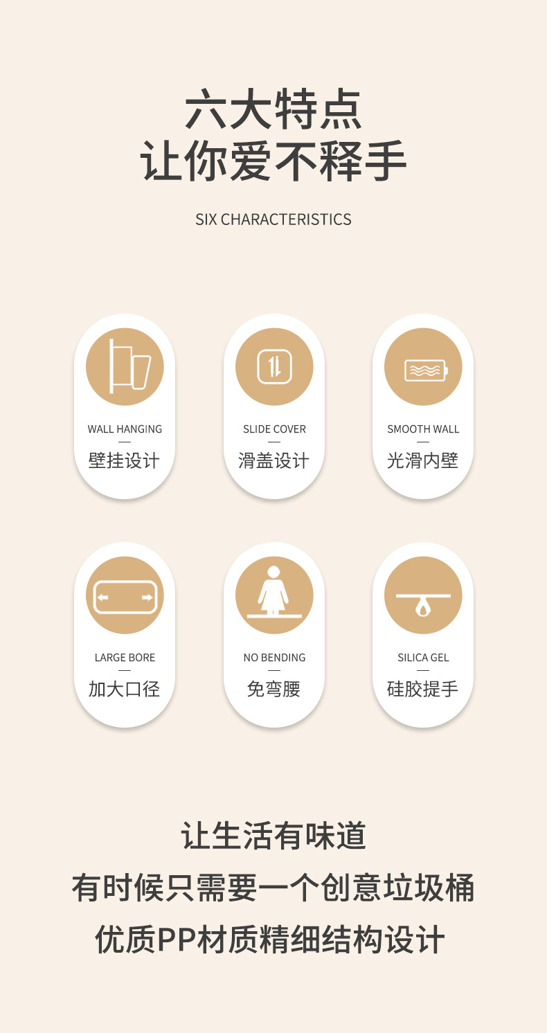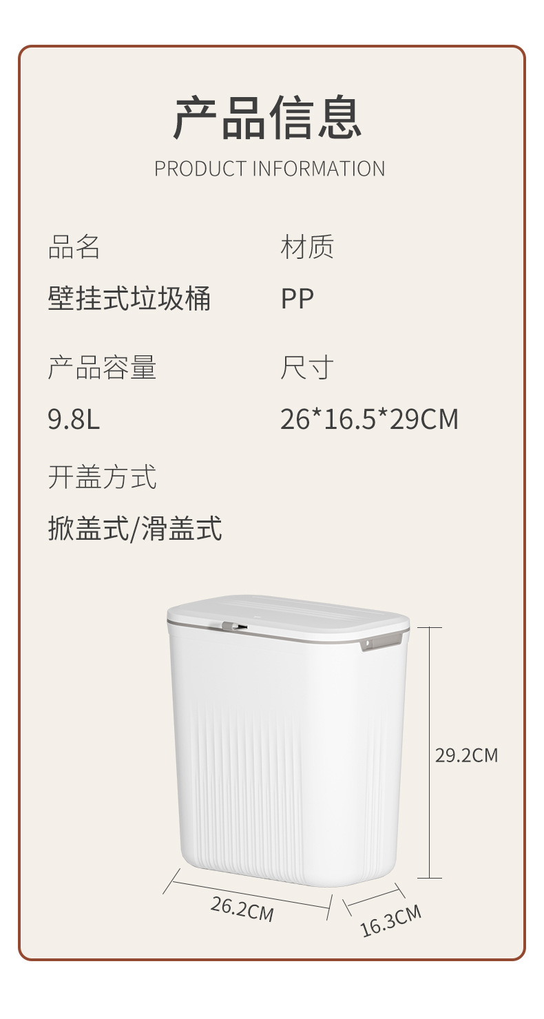 壁掛けゴミ箱スライド式キッチン専用分類穴なし家庭用蓋付きトイレ客間紙かご