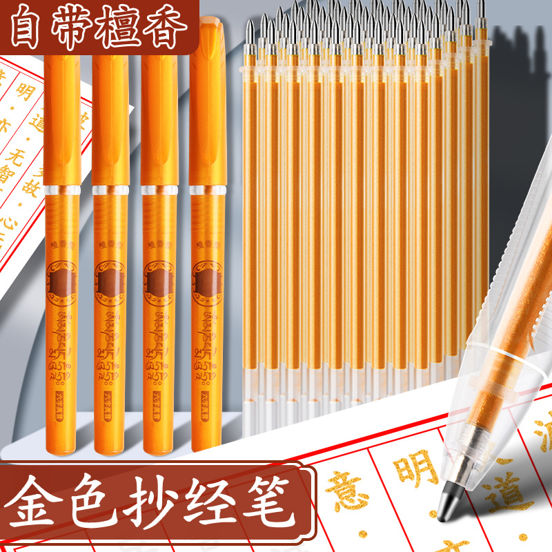 白檀タイプの大容量経典抄写ペンセット、金白檀ペンリフィル、経典模写、書道サイン、手書きペン