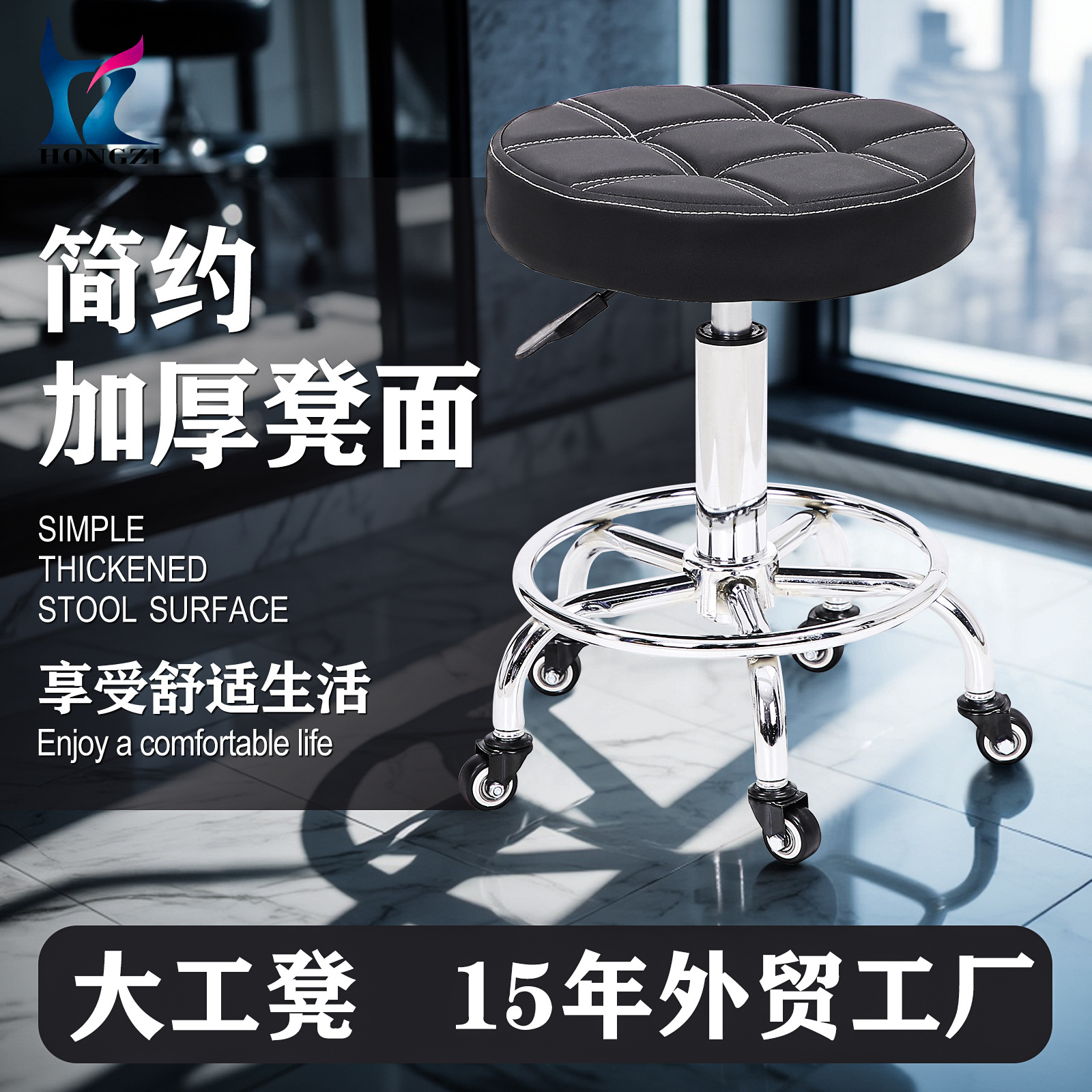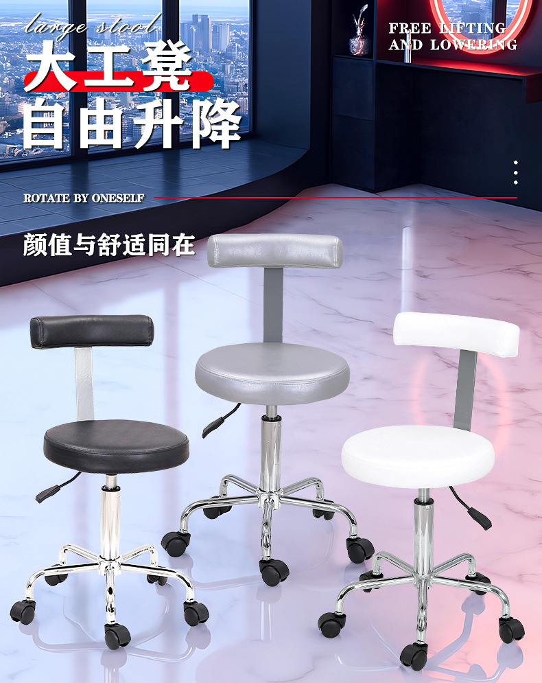 宏子美容椅子は昇降可能で360度回転します ° 回転式理髪店用背もたれ付き大型作業椅子、多機能技術者用椅子(越境販売)