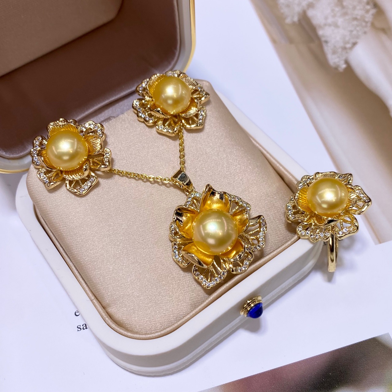 淡水真珠セット女性百合ネックレス純銀耳針ピアス指輪ペンダント三点セットクロスボーダー生放送供給
