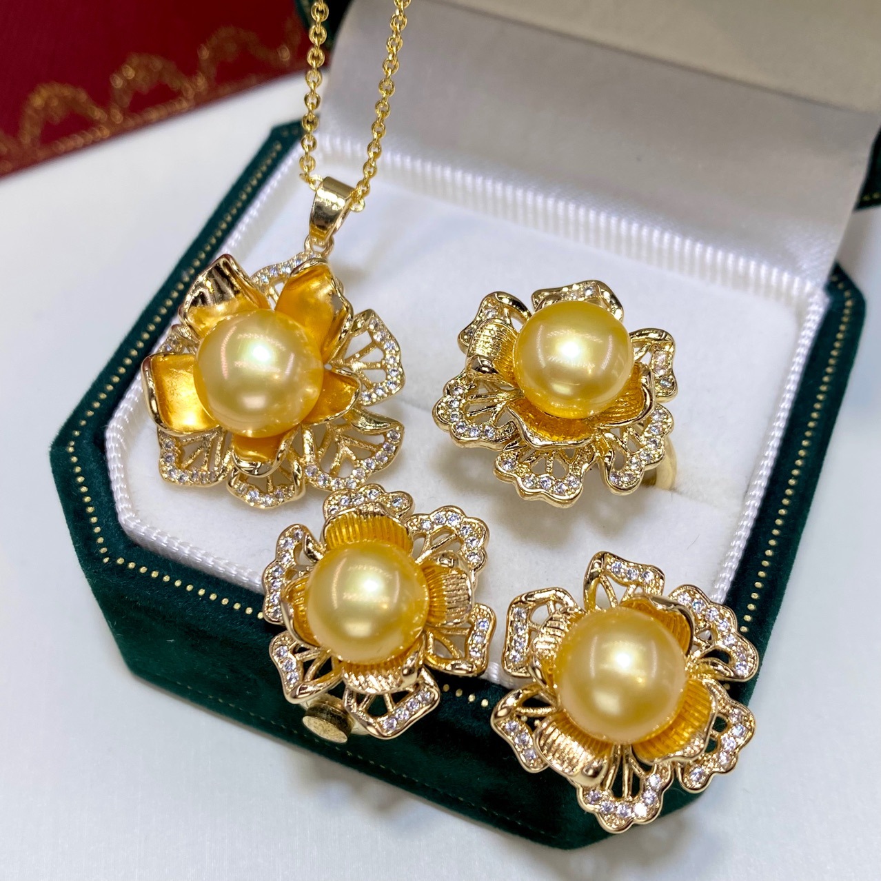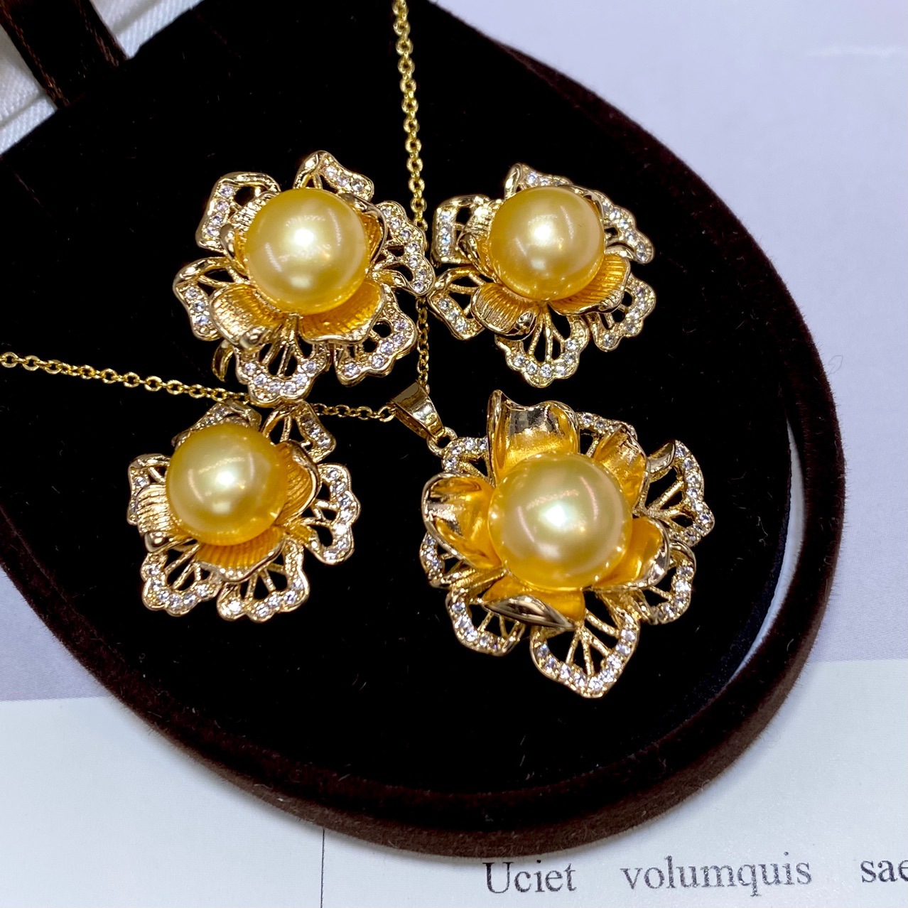 工場卸売り新商品タヒチ海水色真珠セット海水色18k包金ペンダント指輪