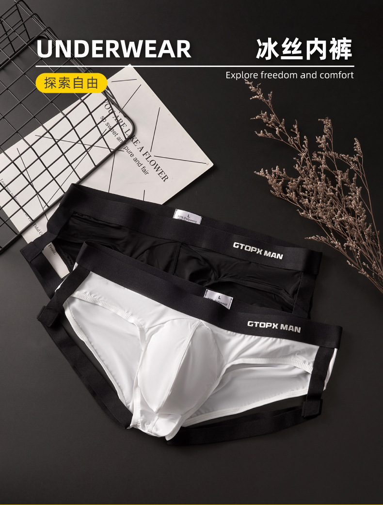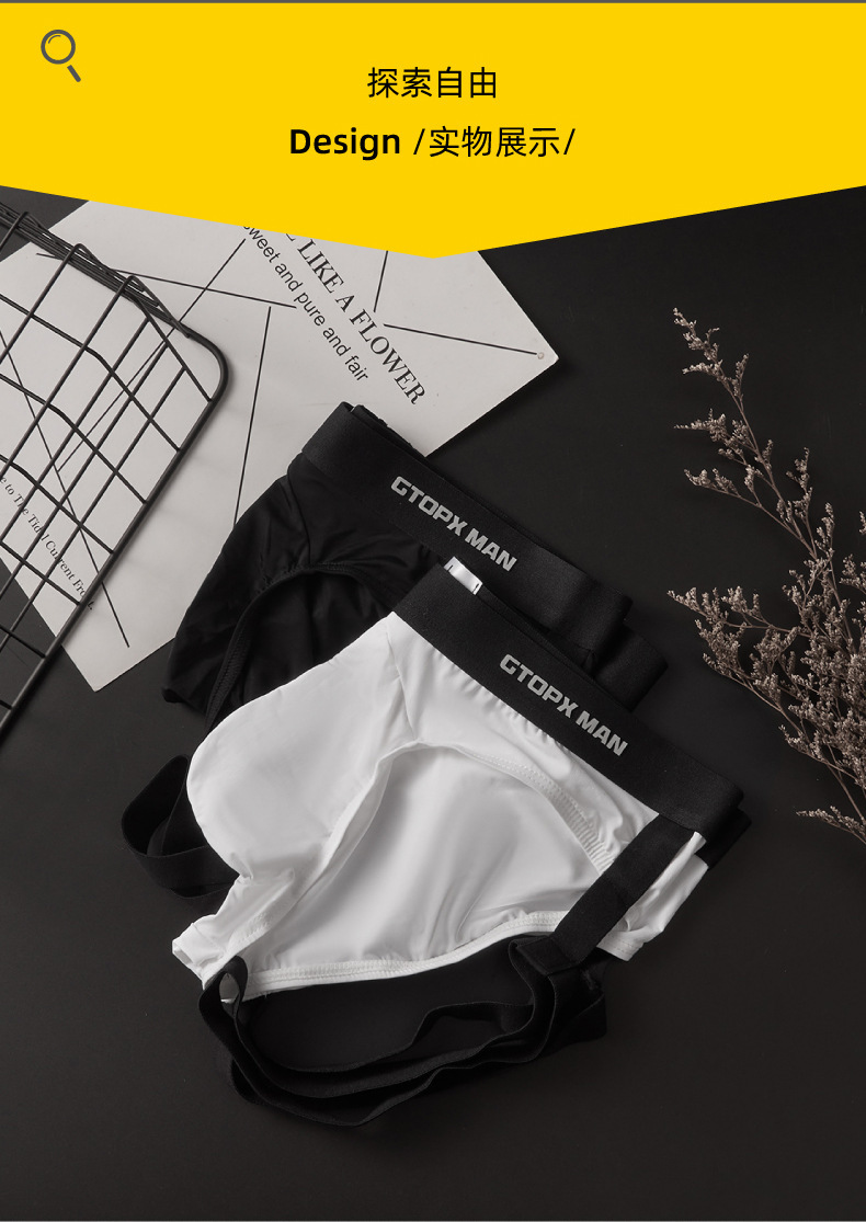 男性用の薄い氷糸ストラップ単層u凸バッグ低腰通気性セクシーな正装ストラップ三角パンツ