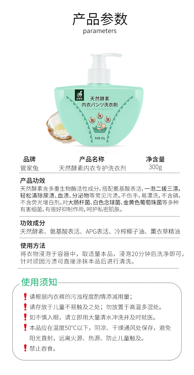 執事ウサギの下着は洗濯剤の天然酵素の下着を専門に保護します。