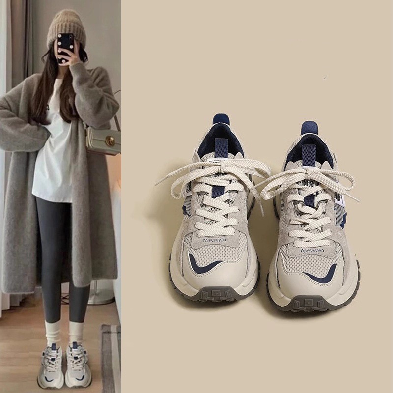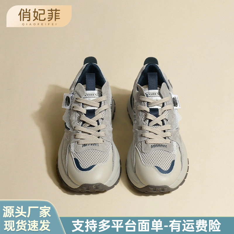 厚底高さ増加お父さん靴女性のための 2025 春と秋の新作イントレンディな多用途メッシュ通気性カジュアルスポーツシューズ