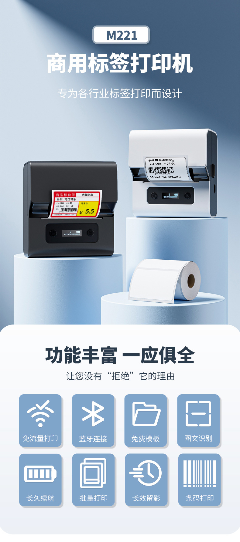 Phomemo M421 商用 Bluetooth ラベル プリンターは、携帯電話に接続でき、複数のタイプのオールインワン エクスプレス レシート プリンターと接続できます。