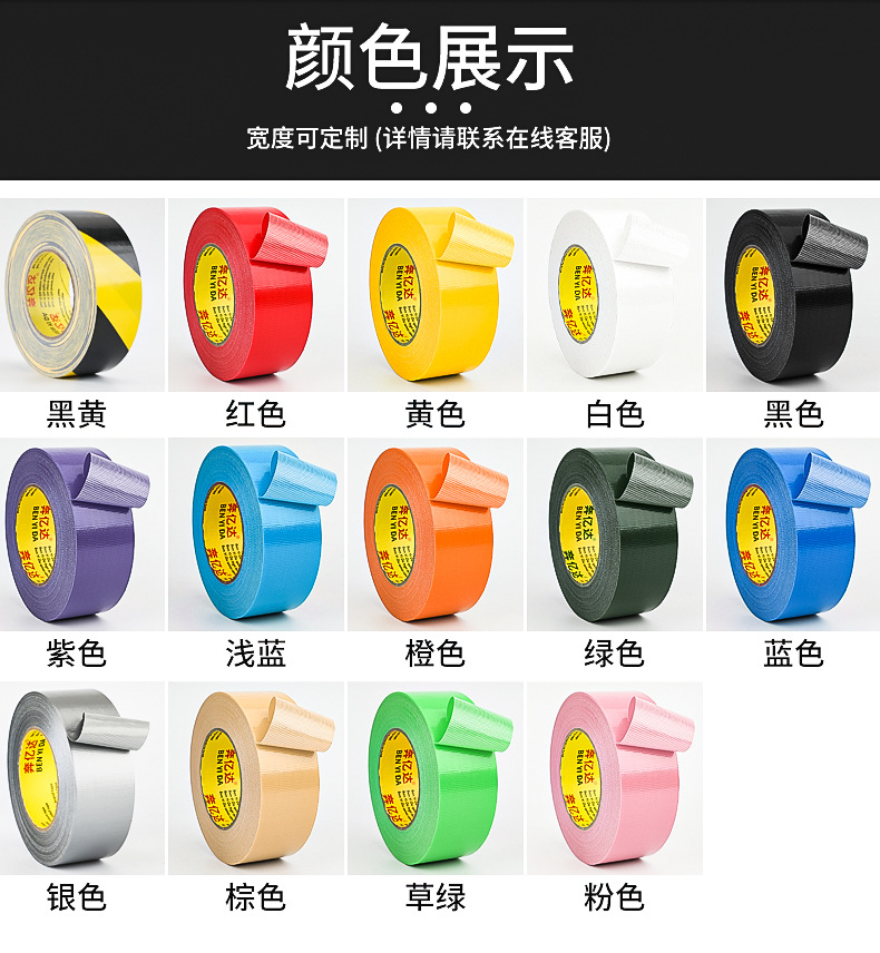カラフルな強力な布ベースのテープ、高粘度、強力な痕跡のない装飾用マルチフィルム、強力な粘着カーペットの継ぎ目、片面テープ