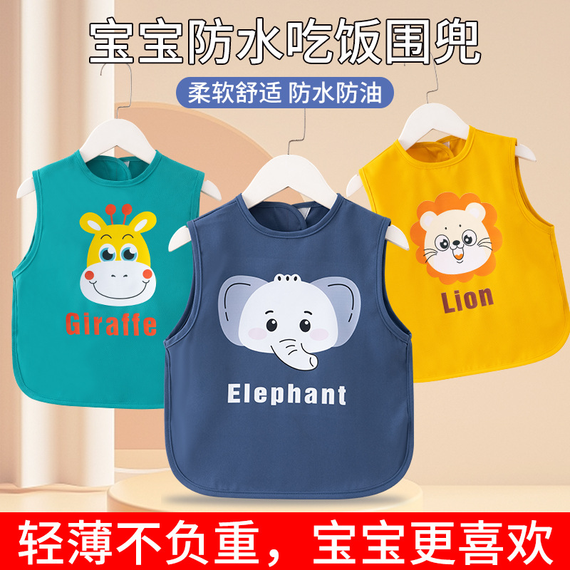 子供用カバー防水夏汚れ防止服男の子赤ちゃん食事ノースリーブ幼稚園エプロン洗濯無料赤ちゃんよだれかけ