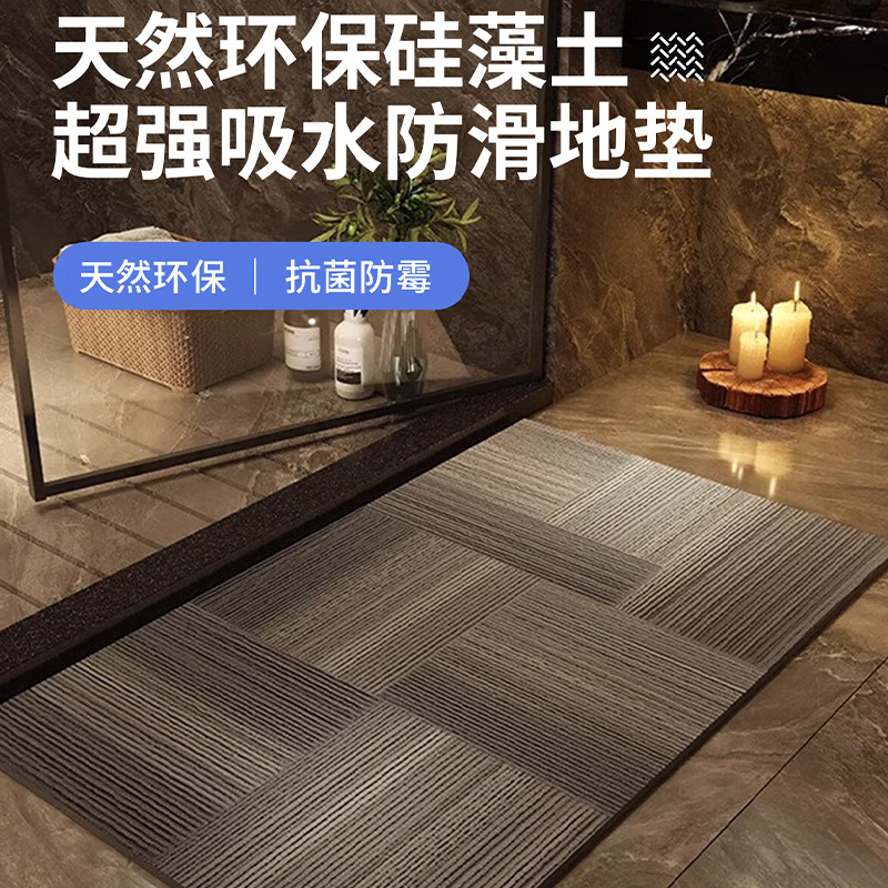 纤苏浴室地垫卫生间硅藻泥吸水垫子厕所门口地毯进门防滑卫浴