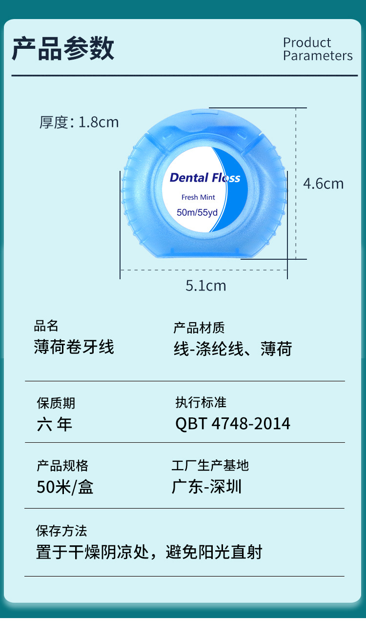 メーカー直販巻歯線50m英語丸箱超細い滑り歯線ミント味携帯現物卸売り