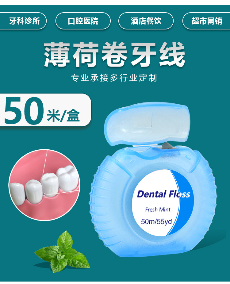 国境を越えた卸売りのフロス巻き50メートルミント味floss矯正巻のフロス口腔クリーナースポット卸売り