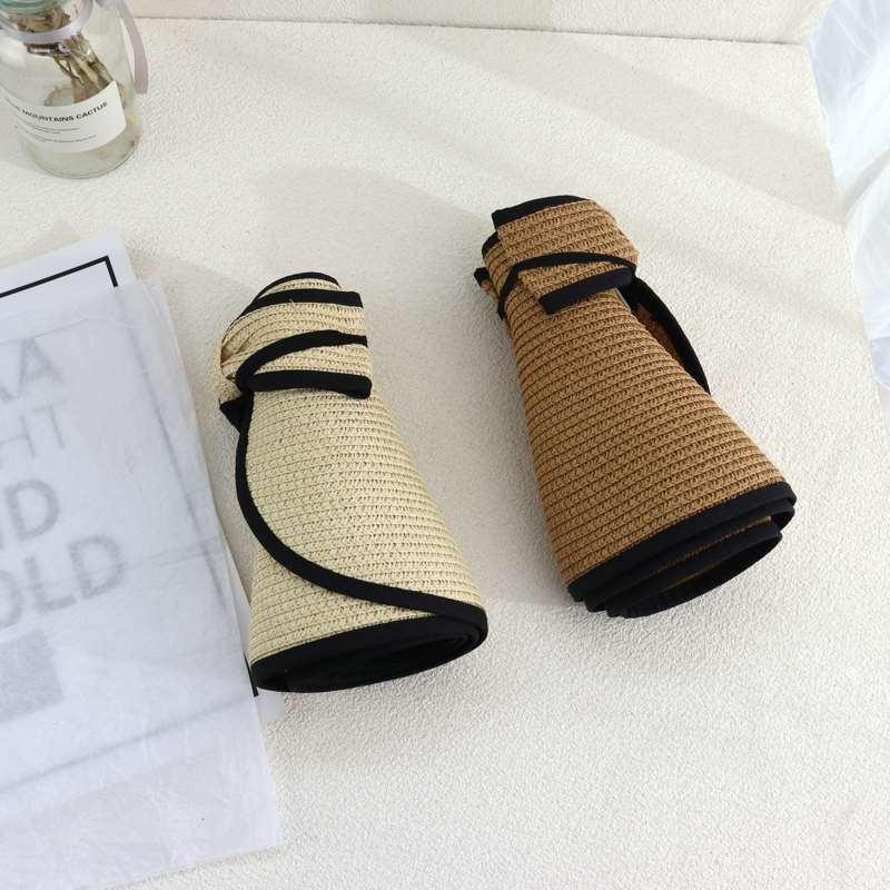 新型ネット赤空頂麦わら帽子女性屋外観光地区公園自転車日焼け止めビーチ蝶ネクタイ太陽帽潮