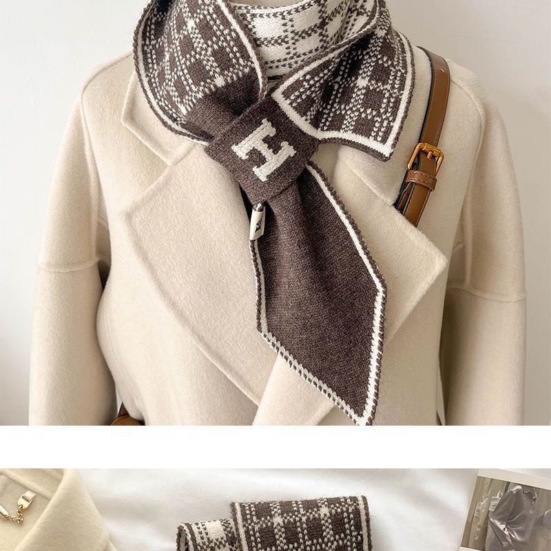 新型高級クロスマフラー韓国版女性秋冬百合ニット棋盤格巾学生保温マフラー