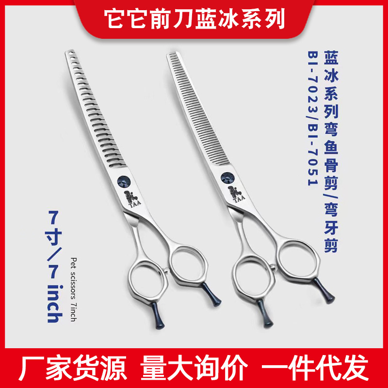 それはtaaペットはさみ青い氷の曲がった魚の骨の曲がった歯を切って蓬蓬を切って7インチのペットの店のBI7051BI7023を切ります。