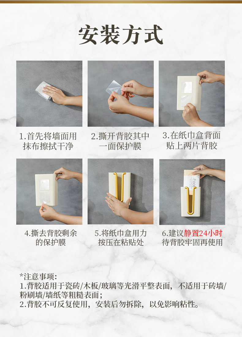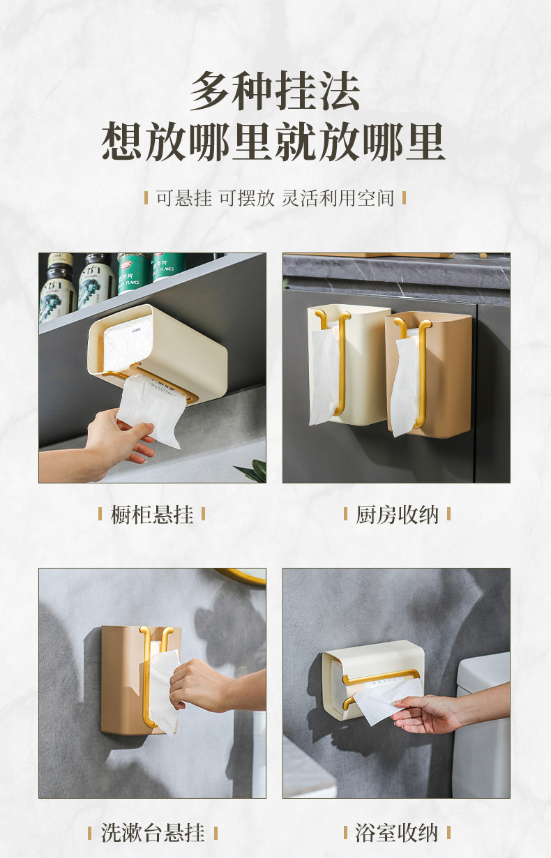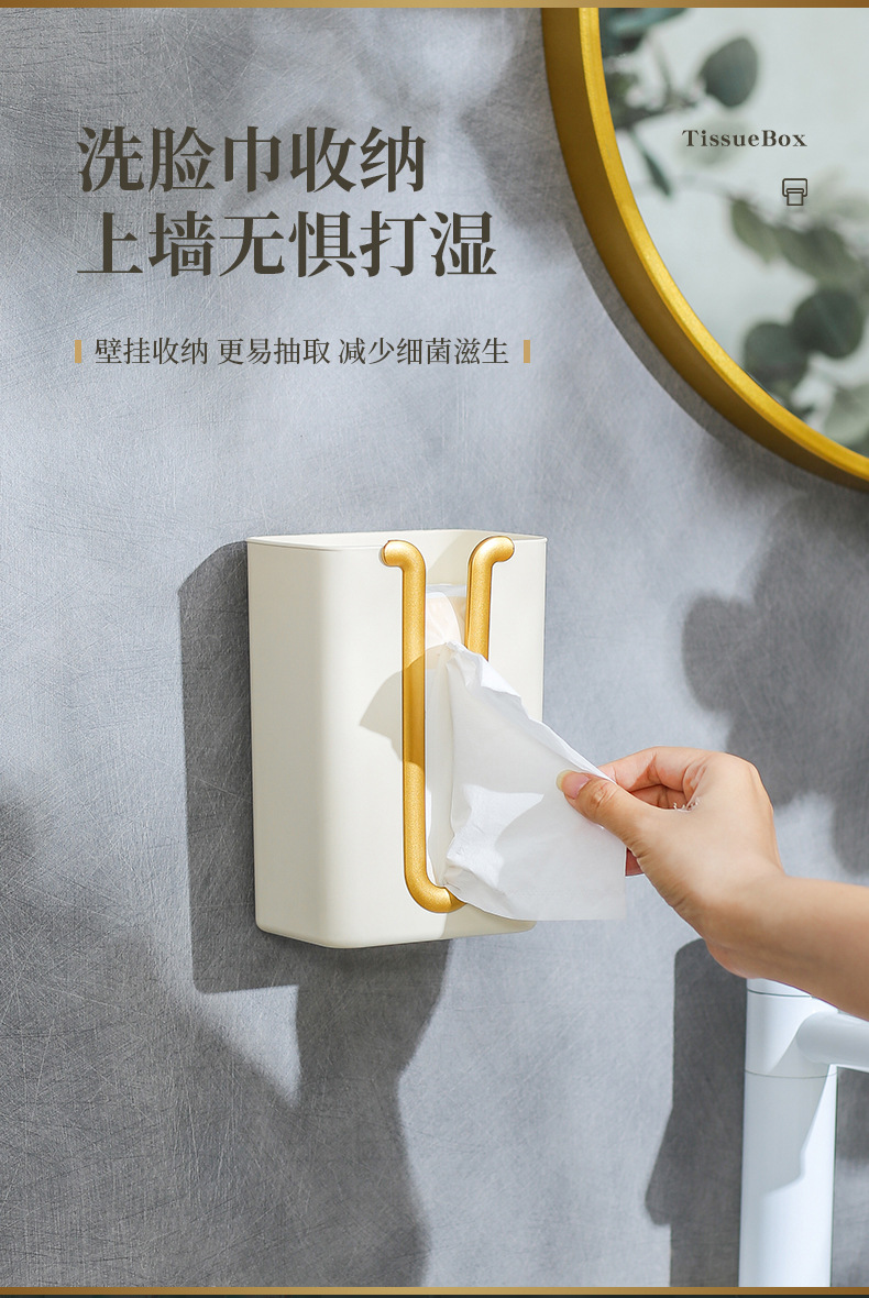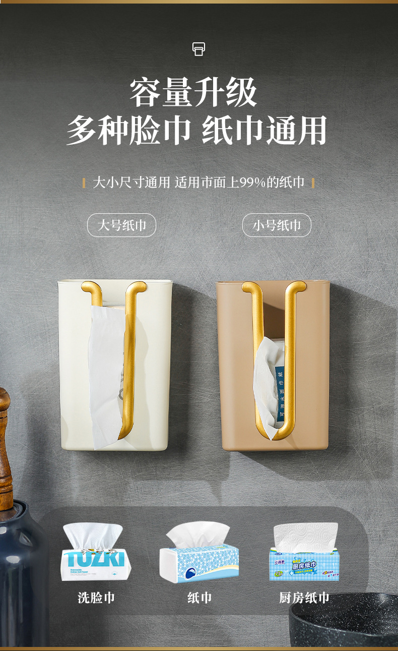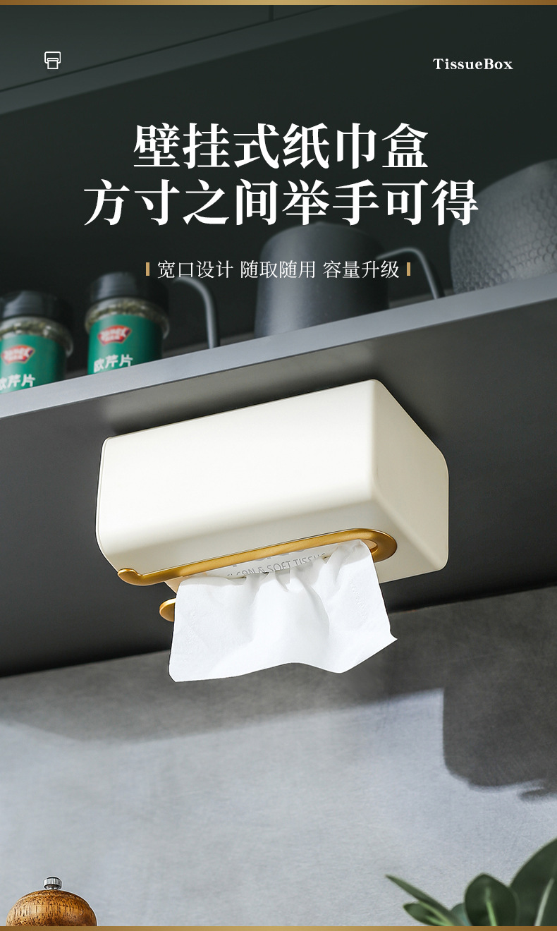 プラスチック穴なし引き出し紙箱壁壁掛け式ティッシュホルダー台所浴室トイレ無痕壁掛けティッシュケース