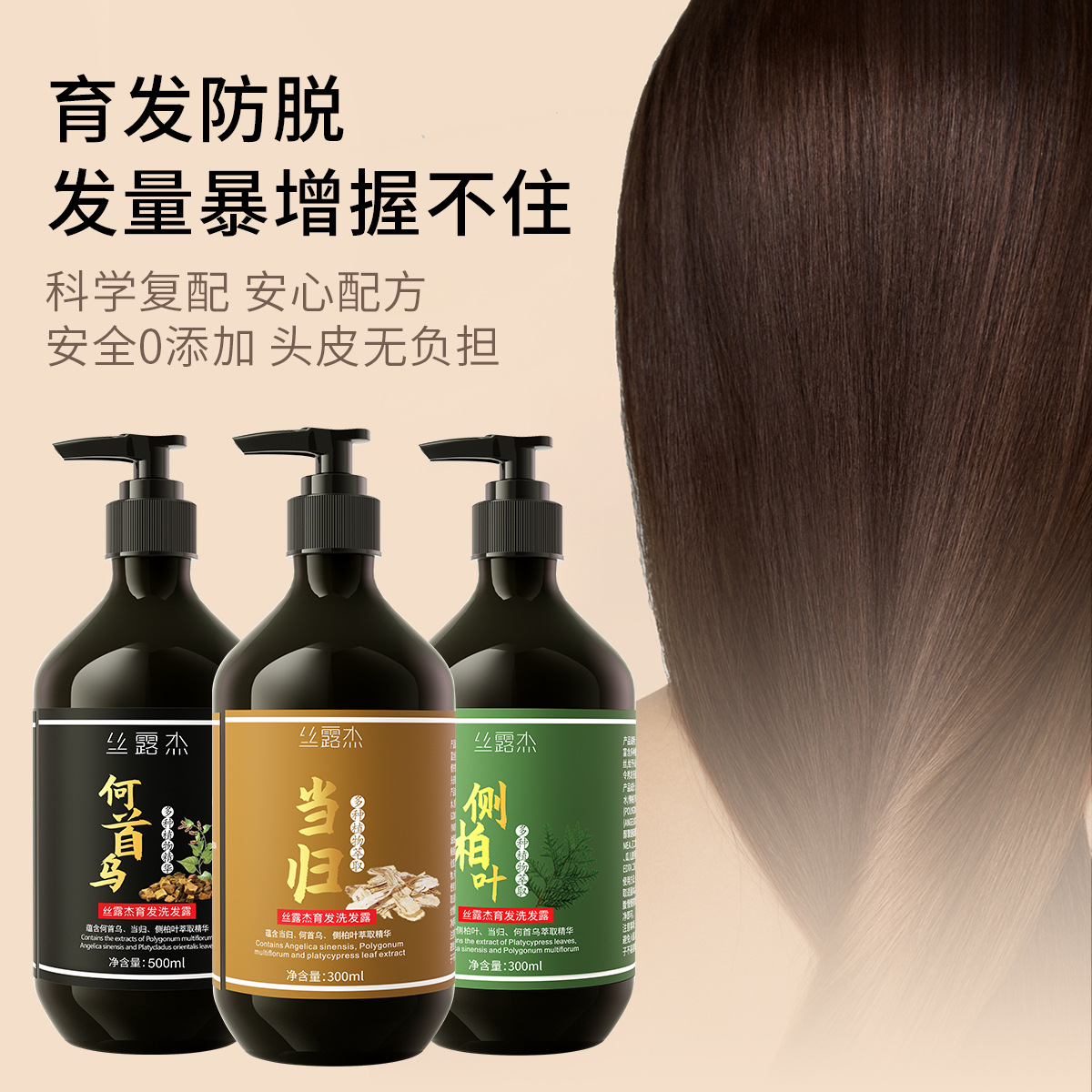 糸露傑側柏葉防脱育毛シャンプー爽やか植物シャンプー500ml工場卸売り300ml