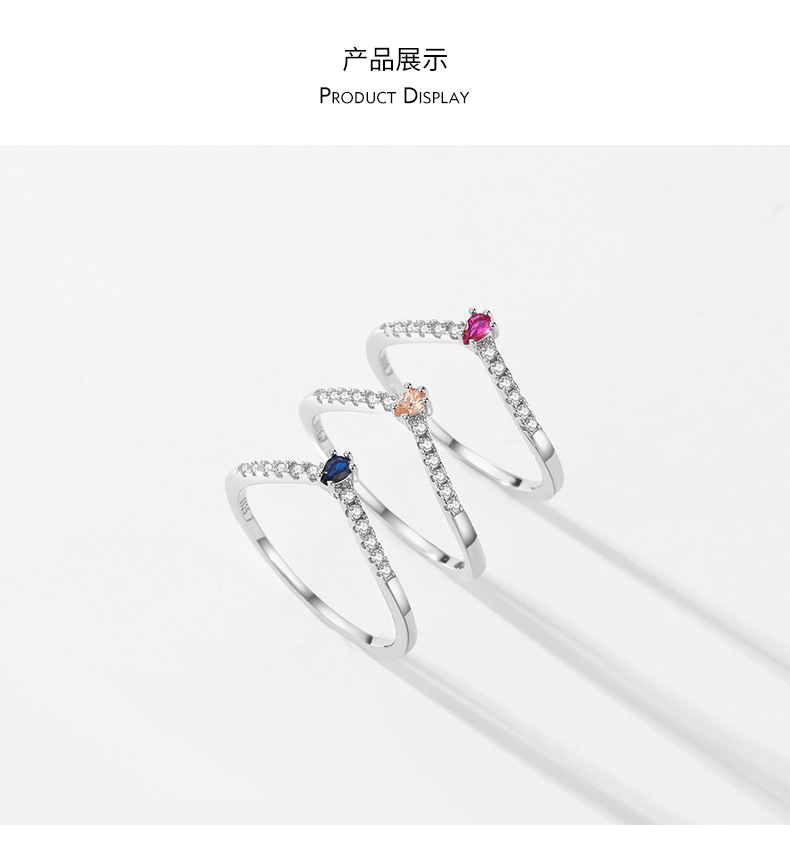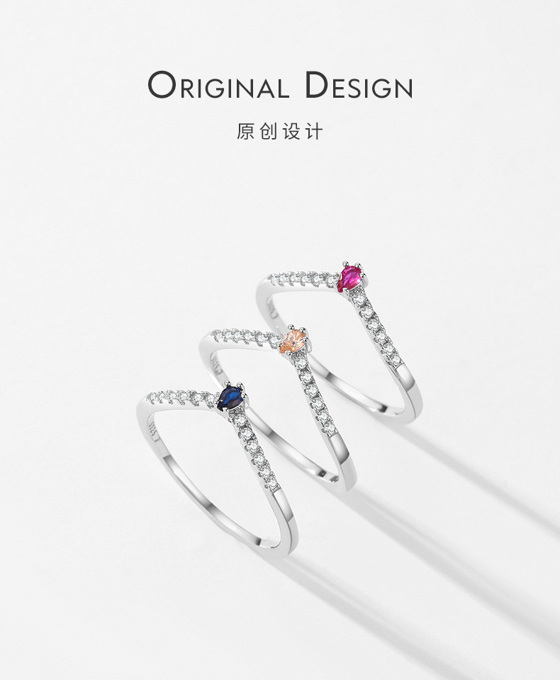 摩典欧米ins小衆個性小柄な指輪の女性はジルコンs 925純銀ファッション指輪のアクセサリーを入れています。