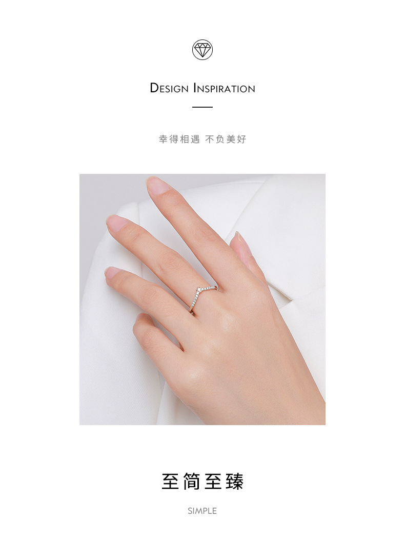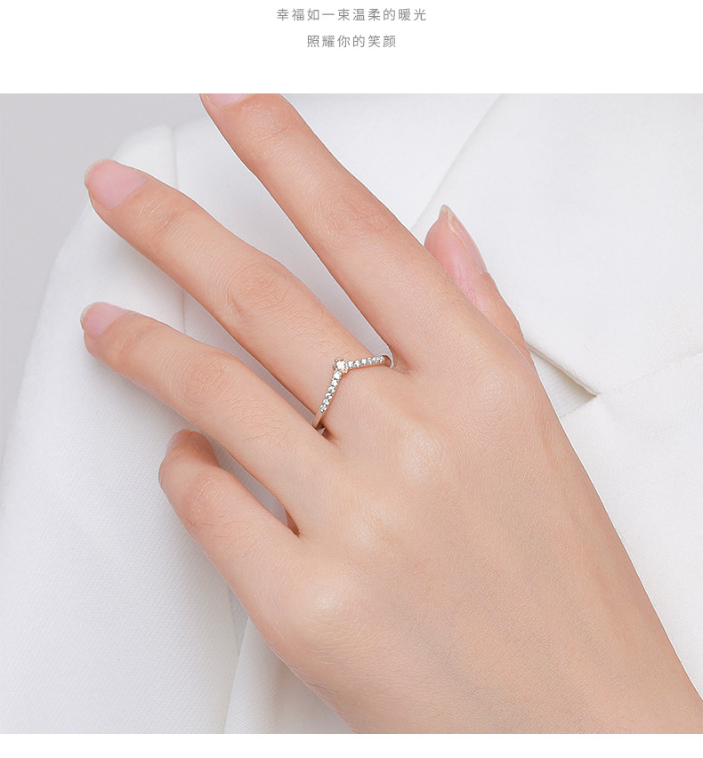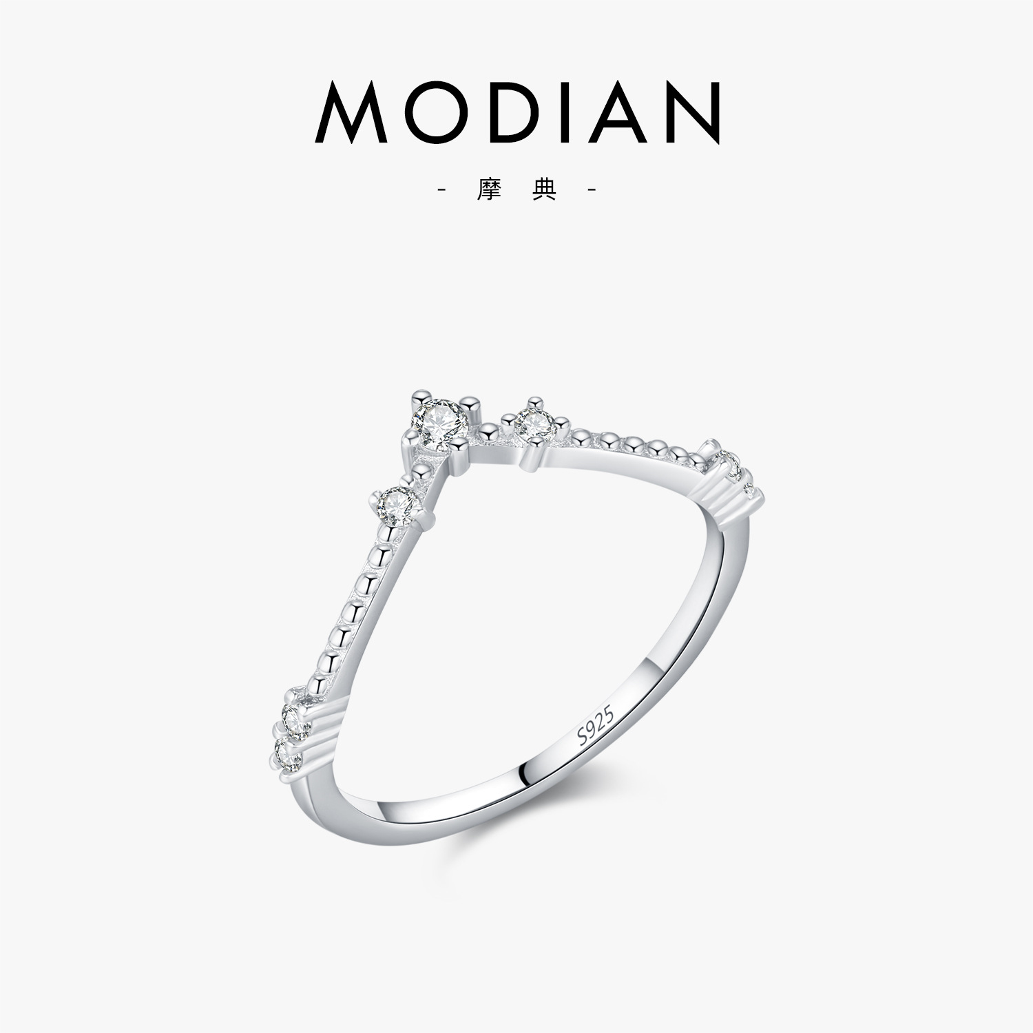 MODIAN摩典莫桑钻S925纯银日韩轻奢高级感精美镶钻V形细戒指环女