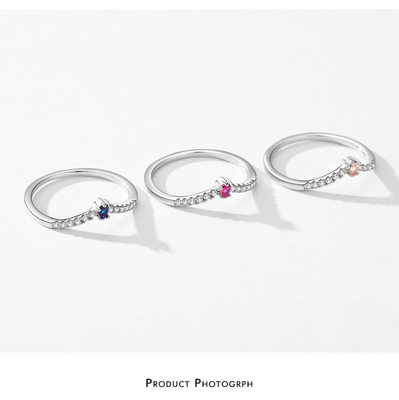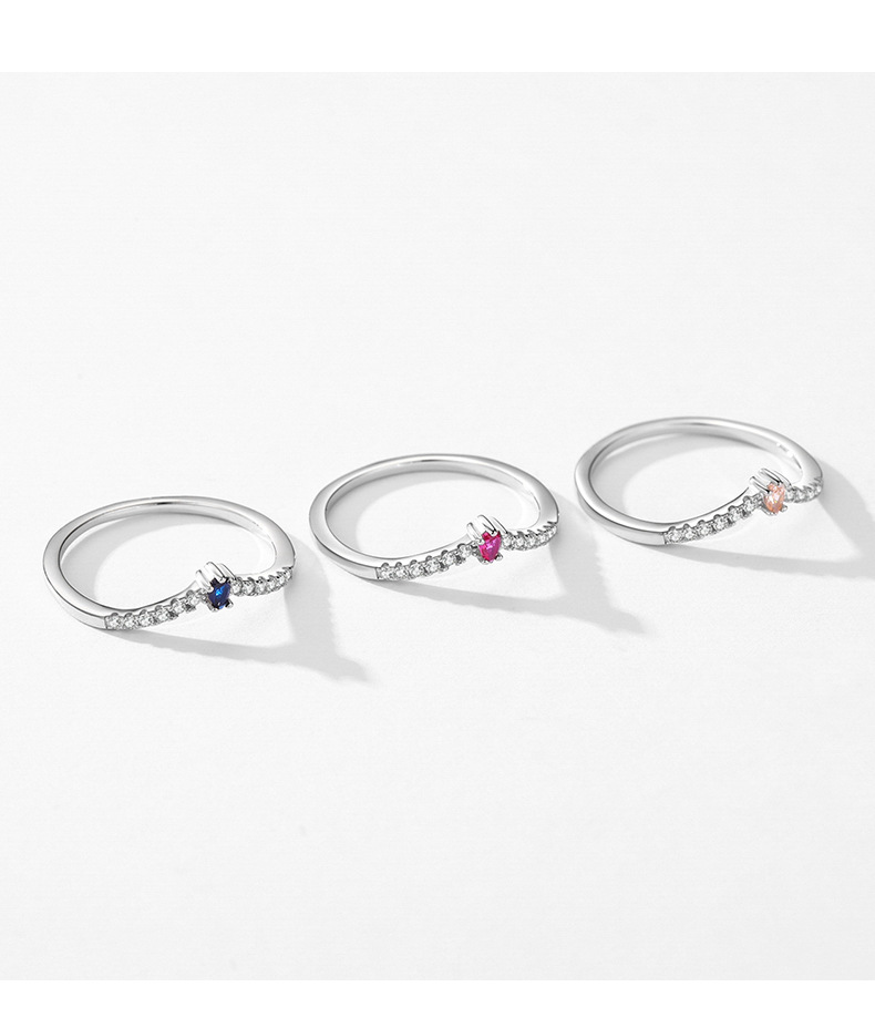摩典の新型s925純銀はカラージルコンの指輪を少しはめ込んでいます。