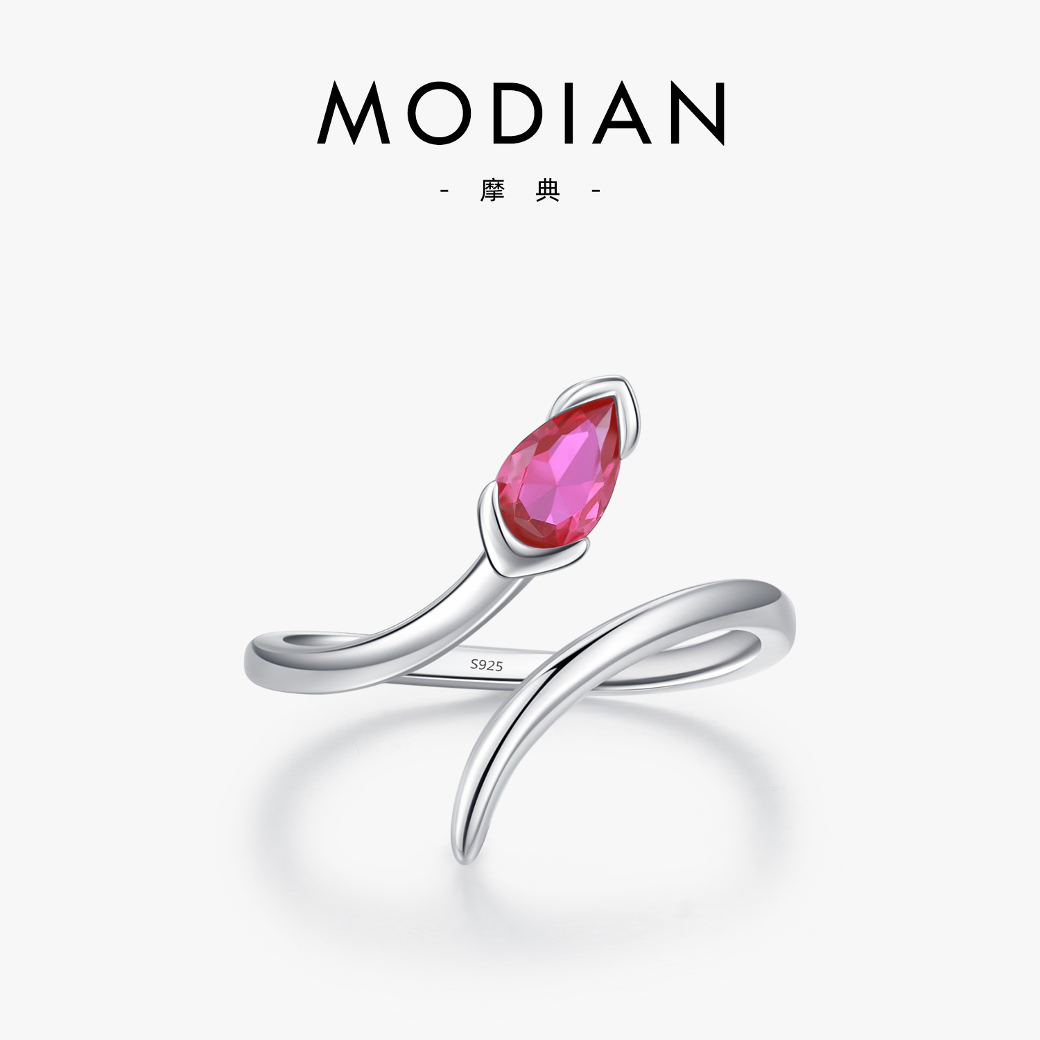 MODIAN摩典s925純銀シンプルな蛇の形の線のデザインの指輪の女性の復古のデザイン感はリングを調節することができます。