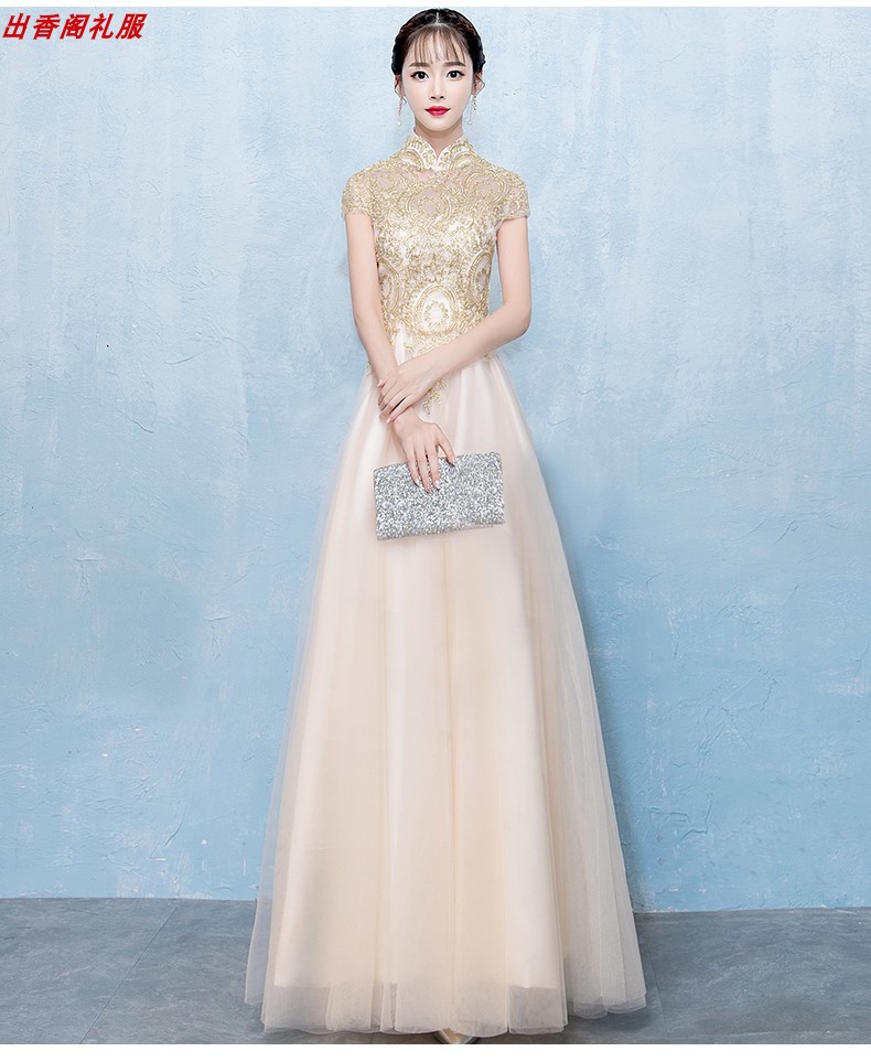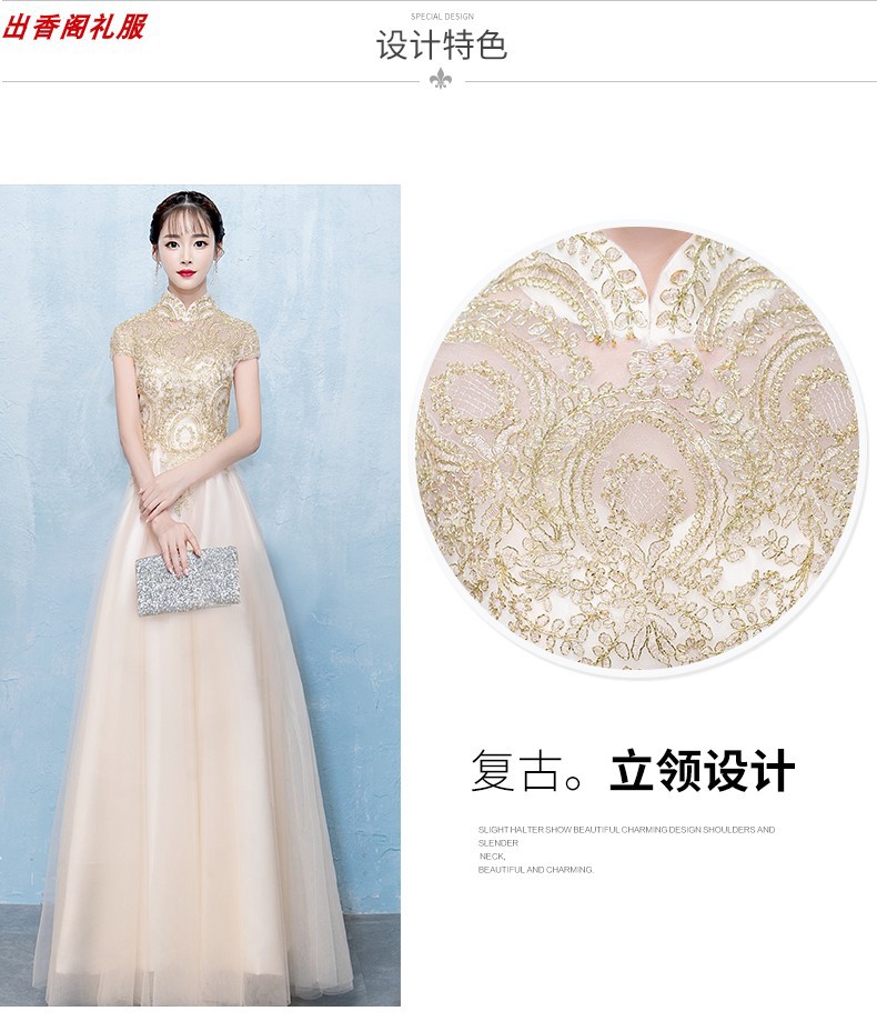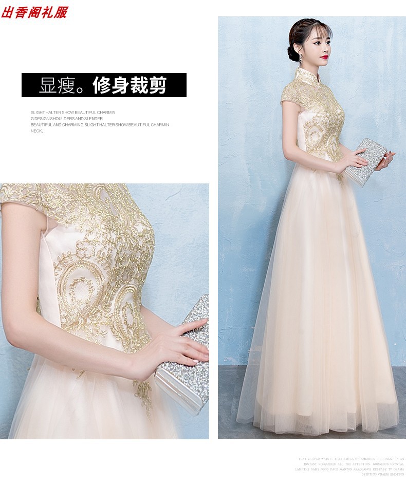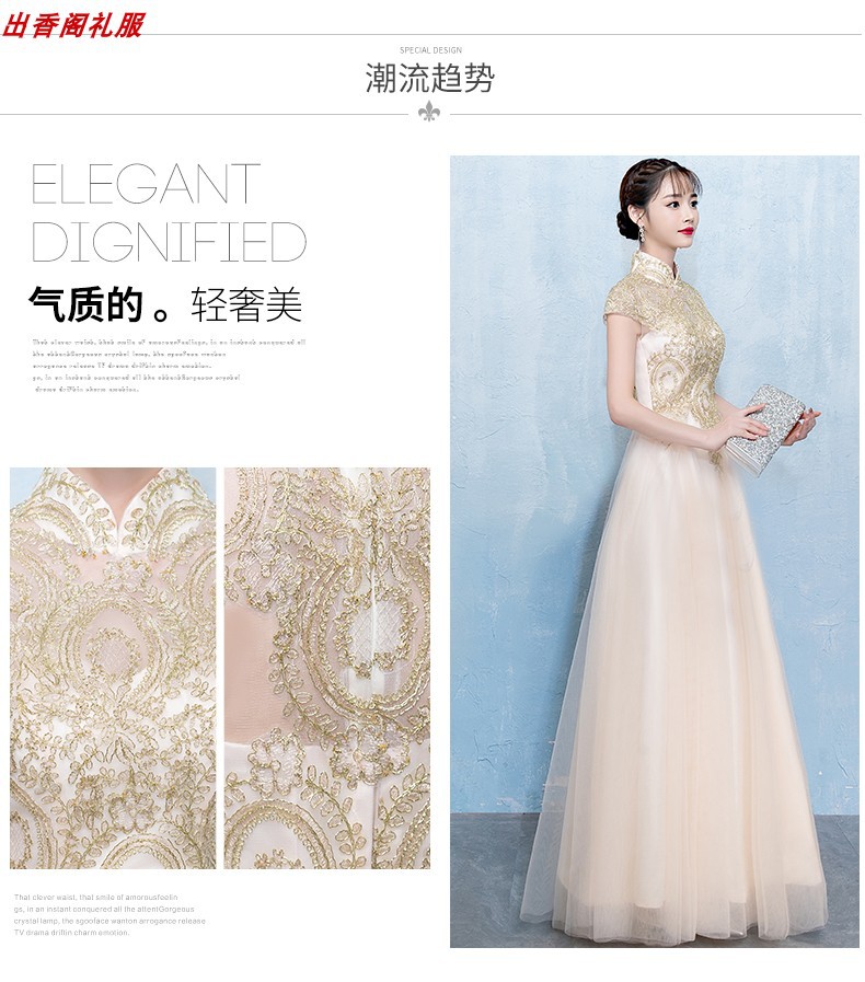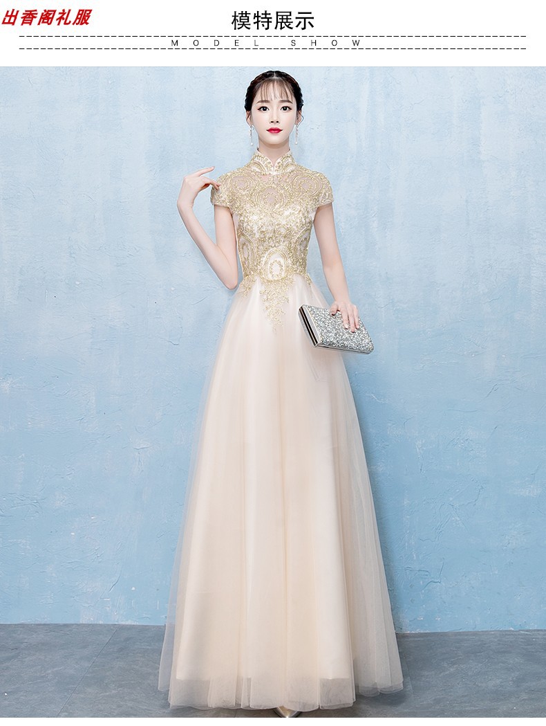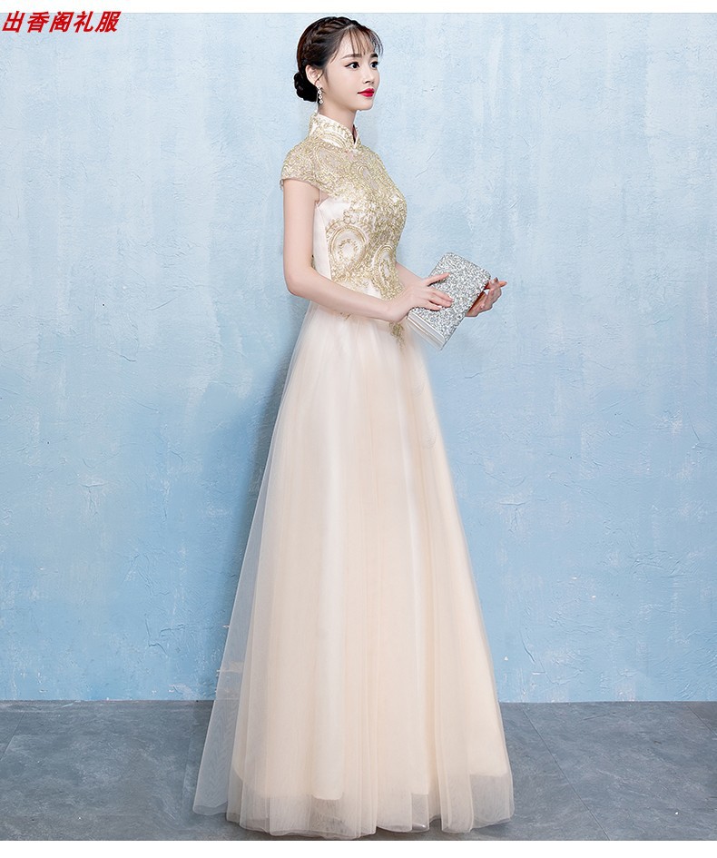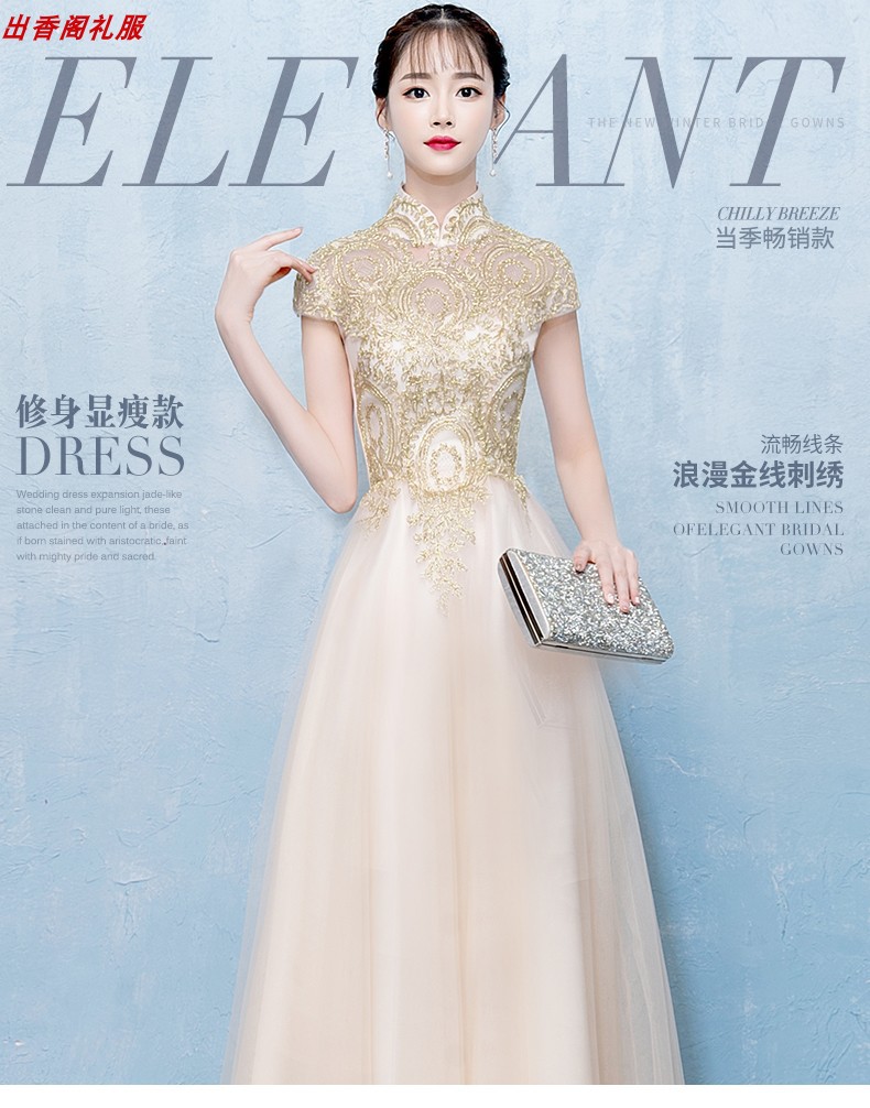 中国風の女性用イブニングドレス2025年宴会合唱会年次総会旗袍司会者衣装ロングドレス高級感のある晩餐会衣装