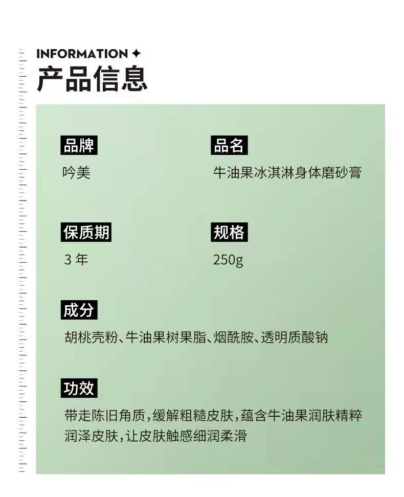 Yinmei アボカド スクラブ ボディ スクラブ 角質ケア 肌保湿ケア Douyin 卸売