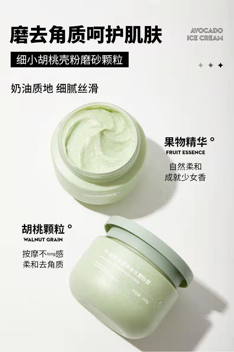 容耀牛油果アイスクリーム体研磨クリーム250g柔らかい清潔角質牛油果研磨クリーム工場