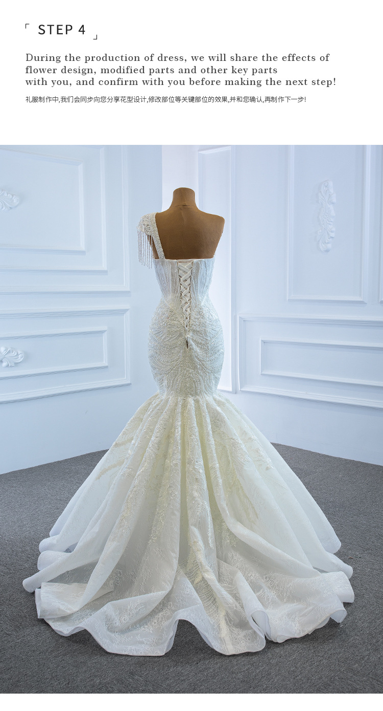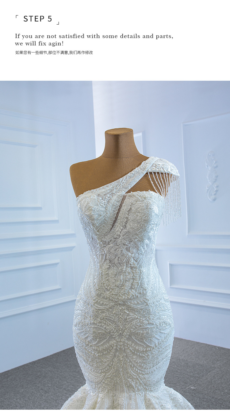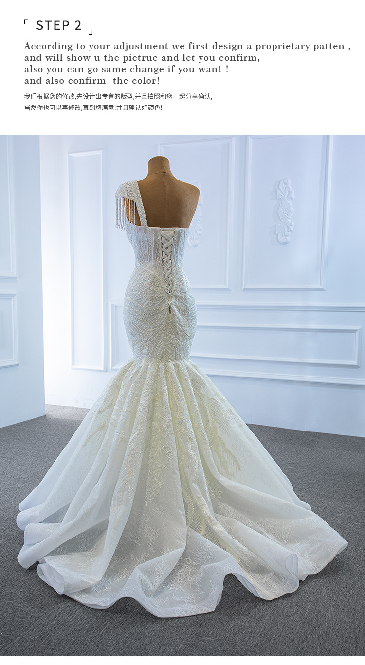 フィッシュテールウェディングドレス アフリカの花嫁 ワンショルダーレース 2025年新作 クロスボーダー Amazon 長袖ドレス トレーン付き