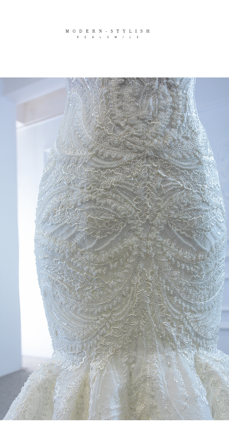 ウェディングドレスの新型イタリアの細い肩に白い象牙の薄い糸のウェディングドレス2025の熱は真珠のウェディングドレスを配合します。