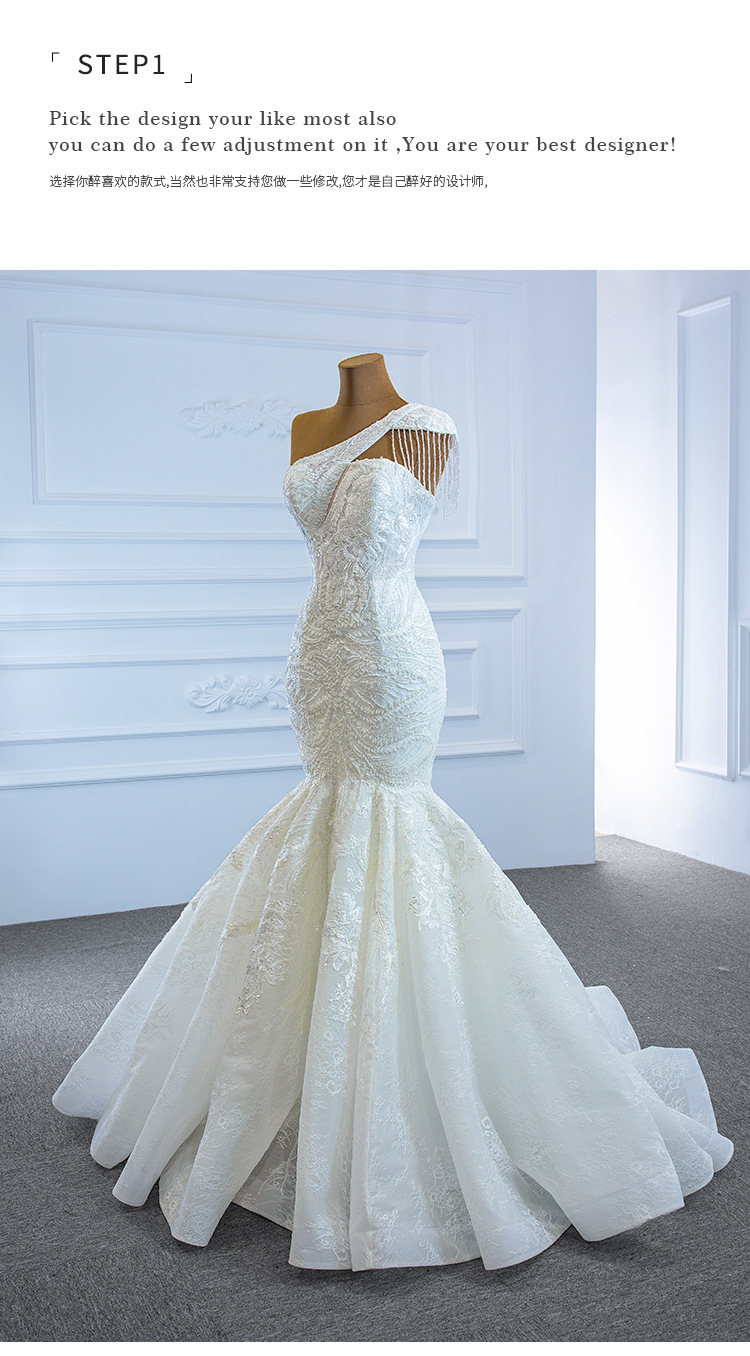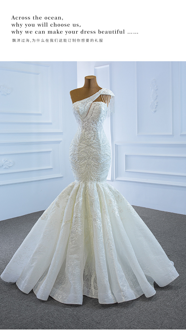 ワンショルダーウェディングドレスフレンチフィッシュテール2025新しいスタイルスリム気質ハイエンドレースドレスクロスボーダーサプライ女性用