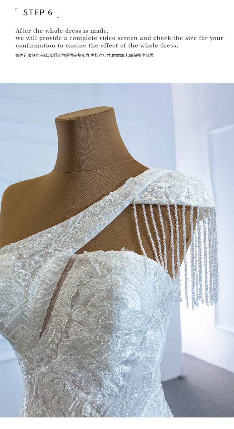 ヨーロッパとアメリカのメインのウェディングドレス 2025 新しいワンショルダーロングトレーリングフランスの花嫁スーパー妖精タッセル夢のような外国貿易のウェディングドレス
