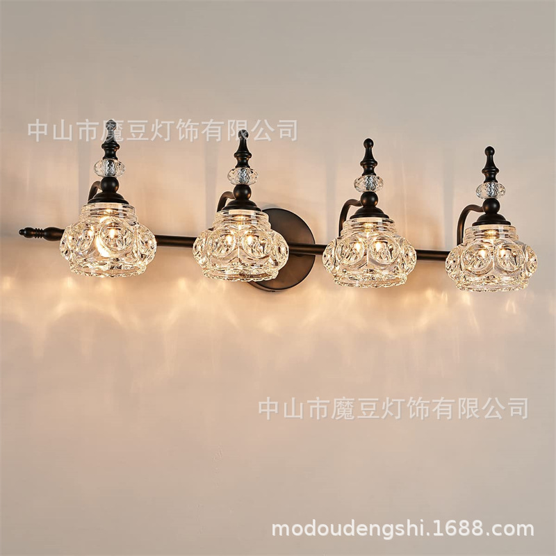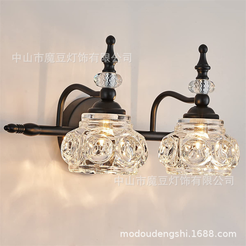 亚马逊跨境爆款美式复古水晶玻璃罩壁灯浴室卧室床头灯走廊壁灯