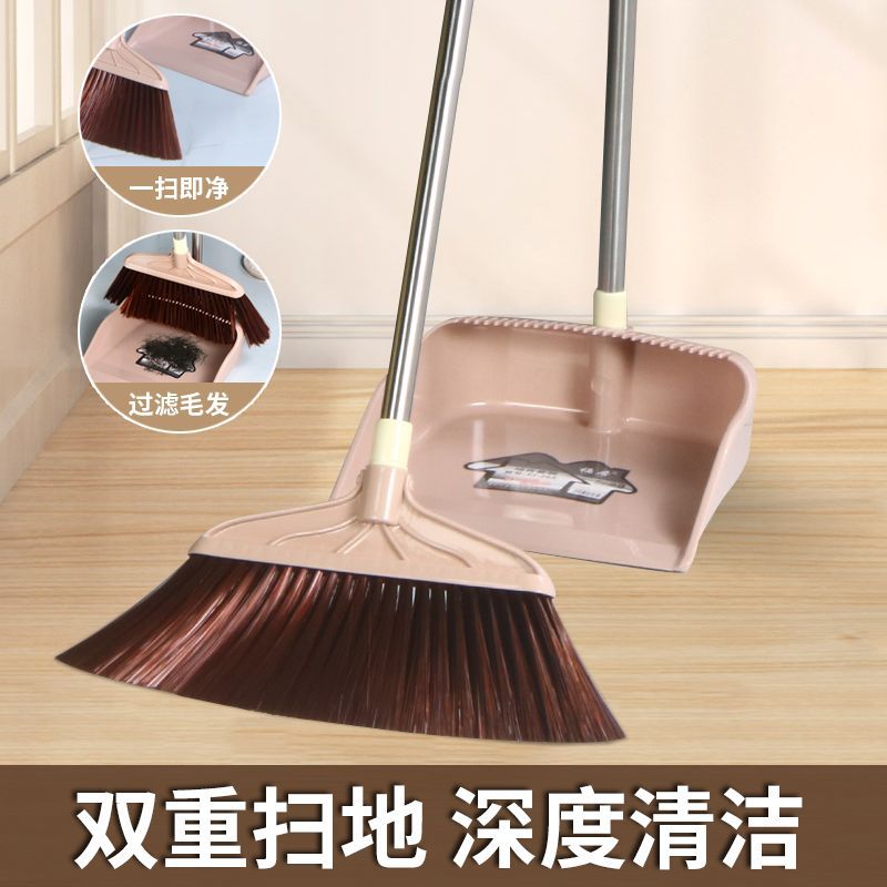 家庭用ほうきセットの柔らかい毛ほうきと箕の組み合わせは毛ほうきにくっつかないで、室内の柔らかい毛ほうきを長い柄にします。