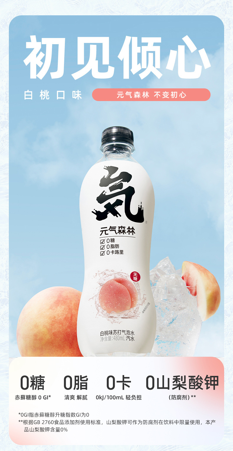 元気森ソーダ気泡水0糖0脂0カード飲料480ml * 15本箱白桃カルマン多味選